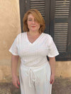 טישירט חרשנית -לבן לייקרה דמוי תחרה
