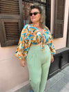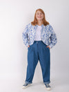 ג׳קט מותני צרעה - כחול לבן פרחוני