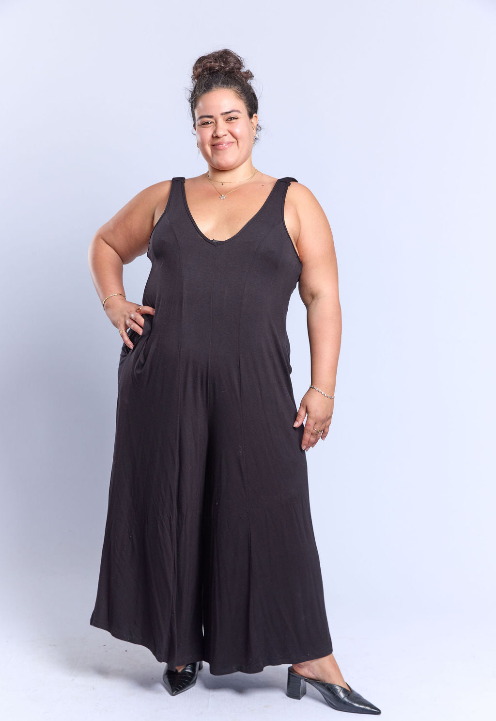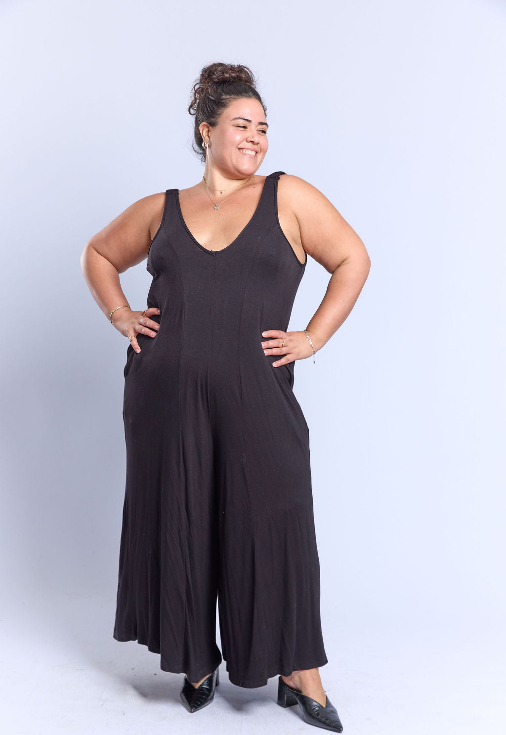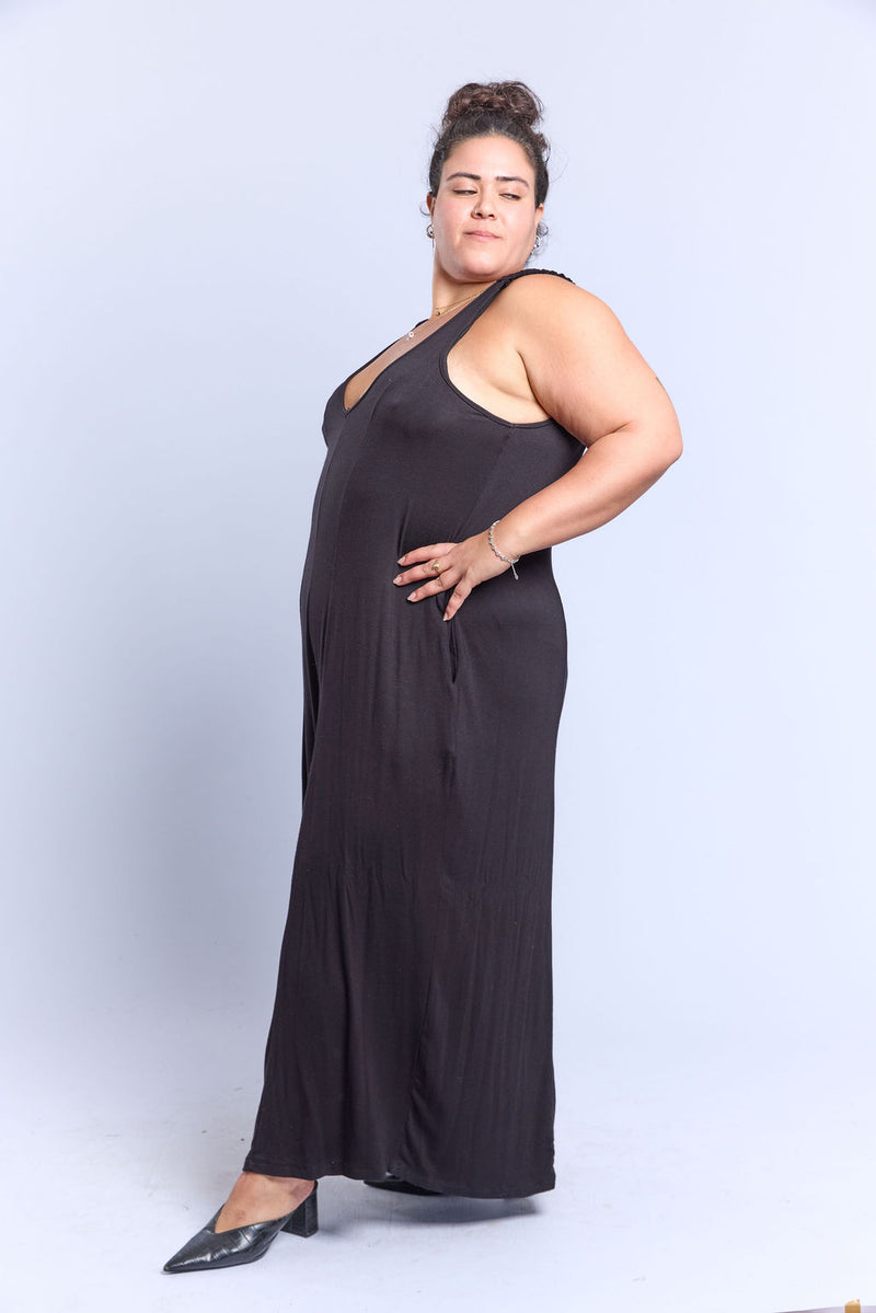 אוברול במידות גדולות, עם כתפיות עם כיווצים וכמובן כיסים!