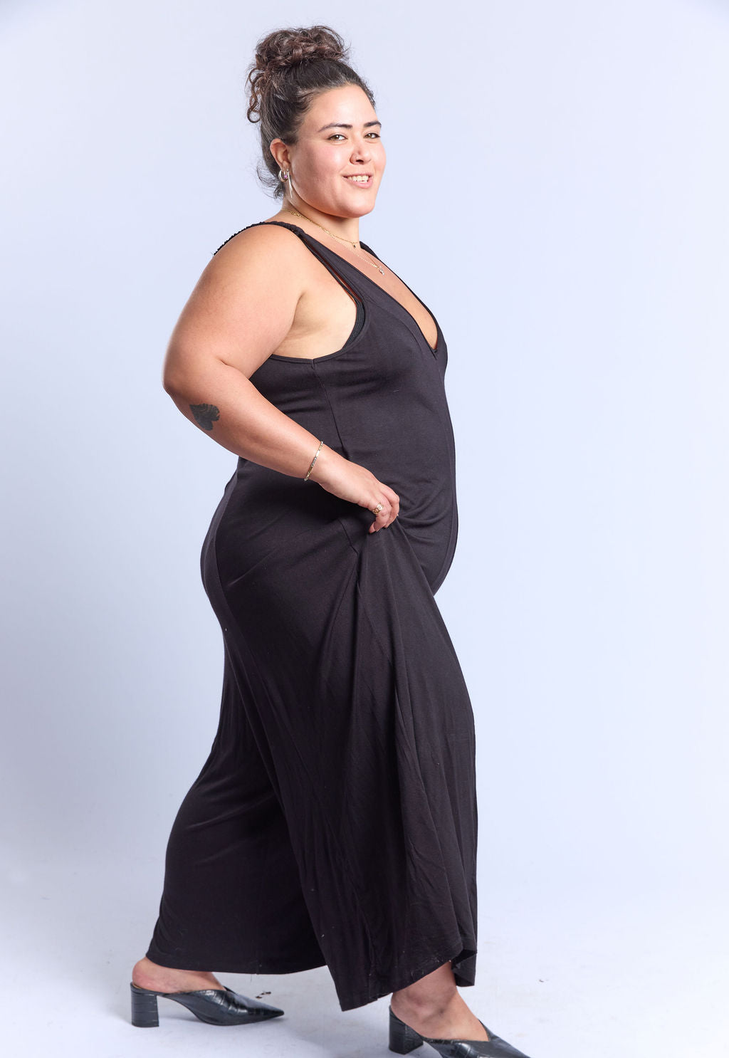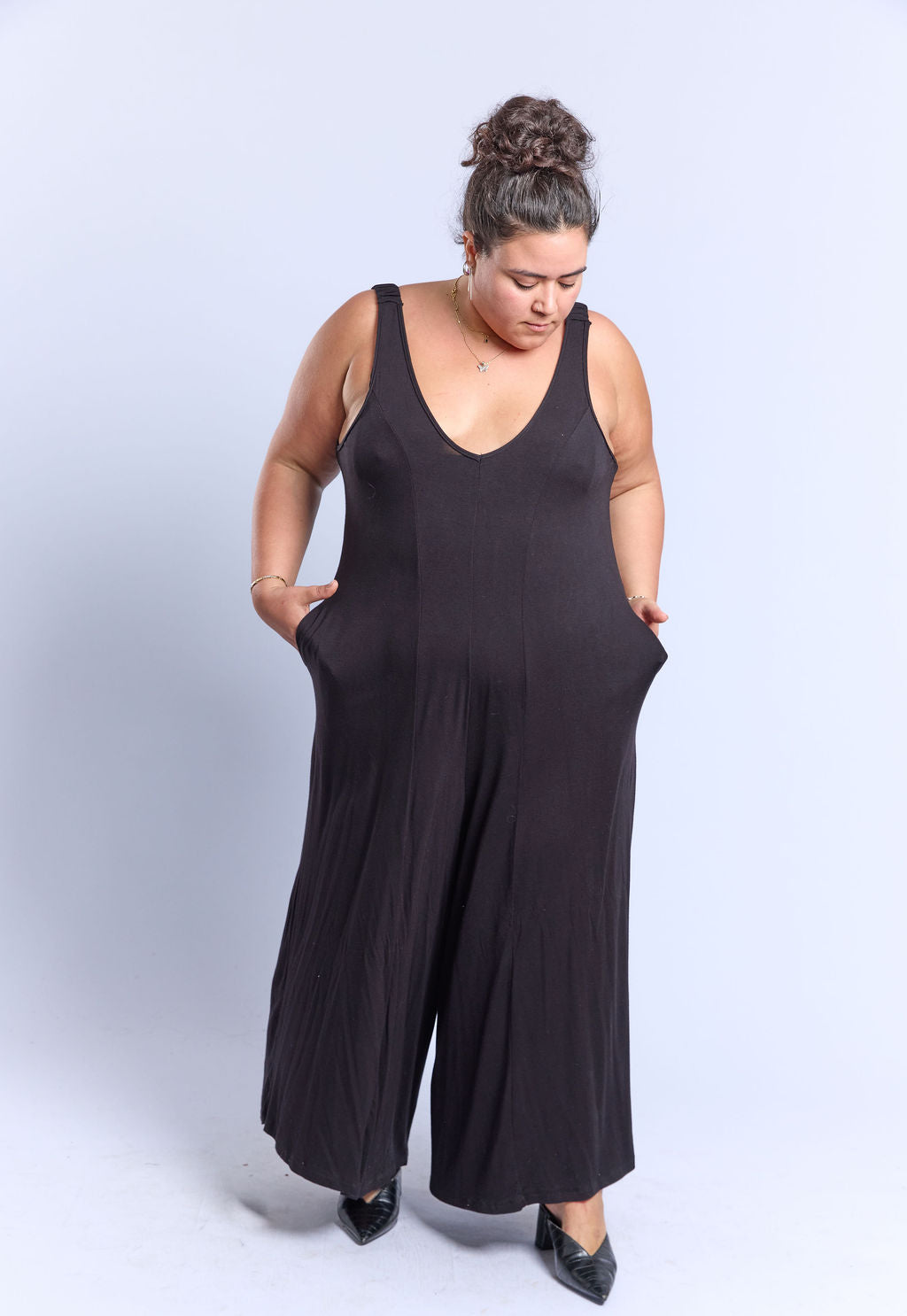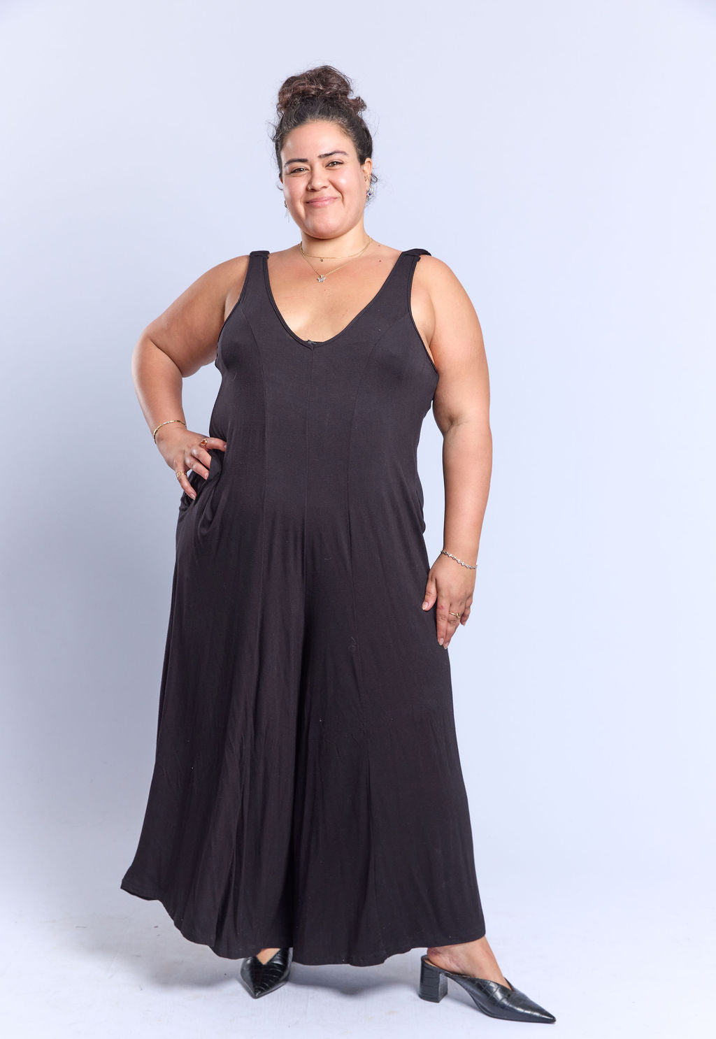 אוברול במידות גדולות, עם כתפיות עם כיווצים וכמובן כיסים!
