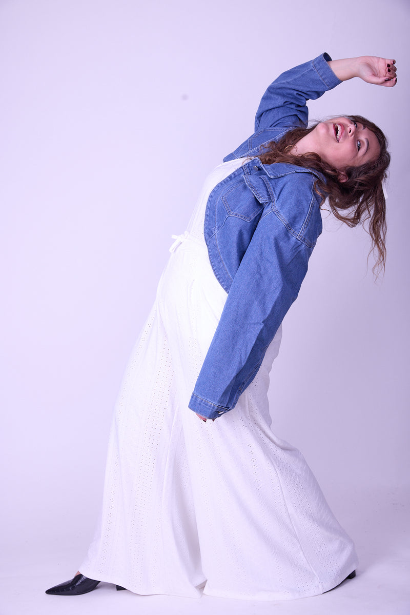 שני, הדוגמנית בתמונת חוץ לובשת מידה 46/48 וגובהה 1.70 מטר.