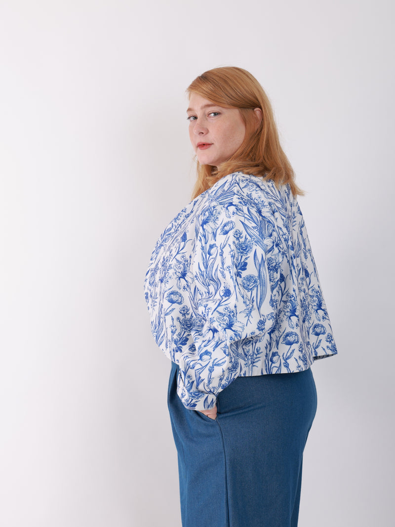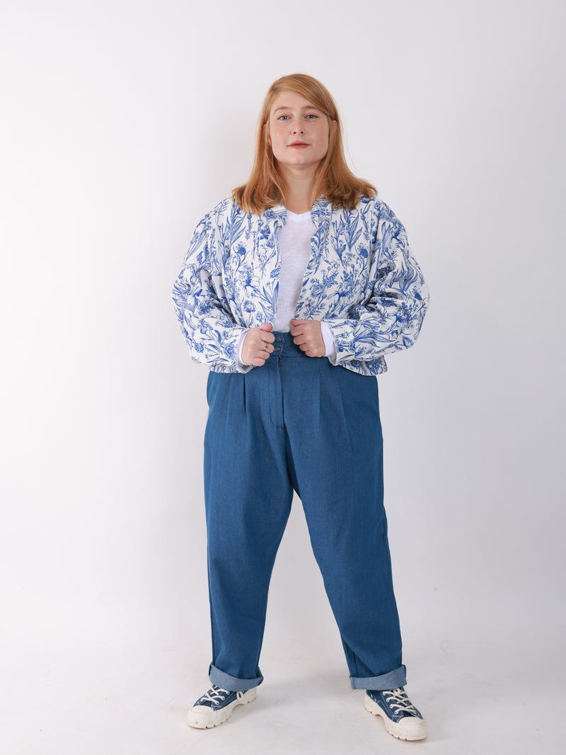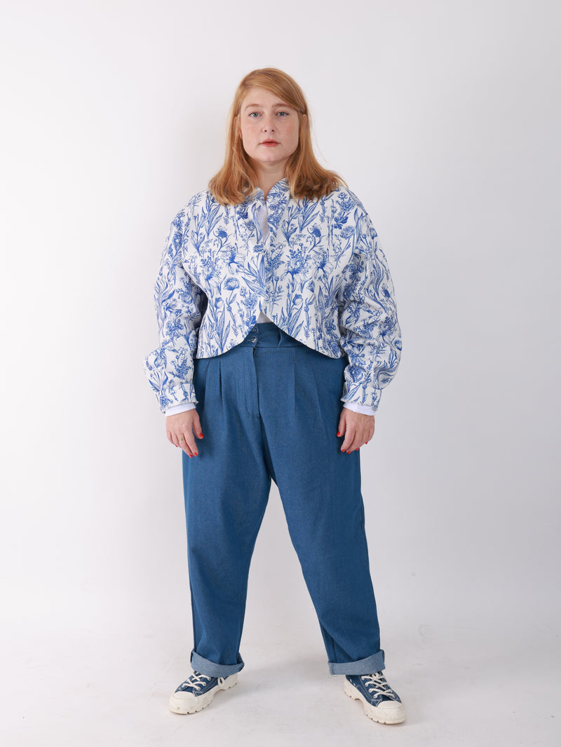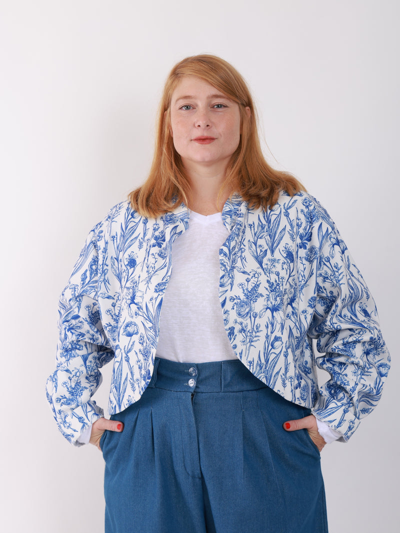 ג׳קט מותני צרעה - כחול לבן פרחוני