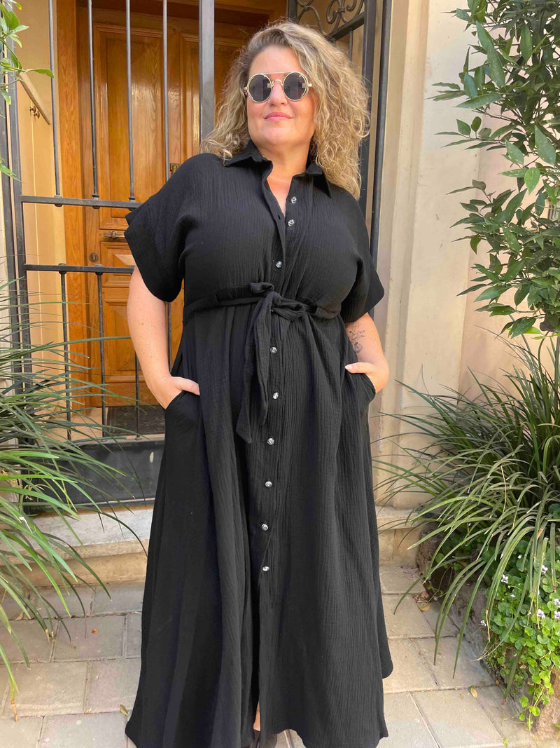לשמלה קשירה במותן והיא יכולה להתכוונן לפי היקף המותן שלך.