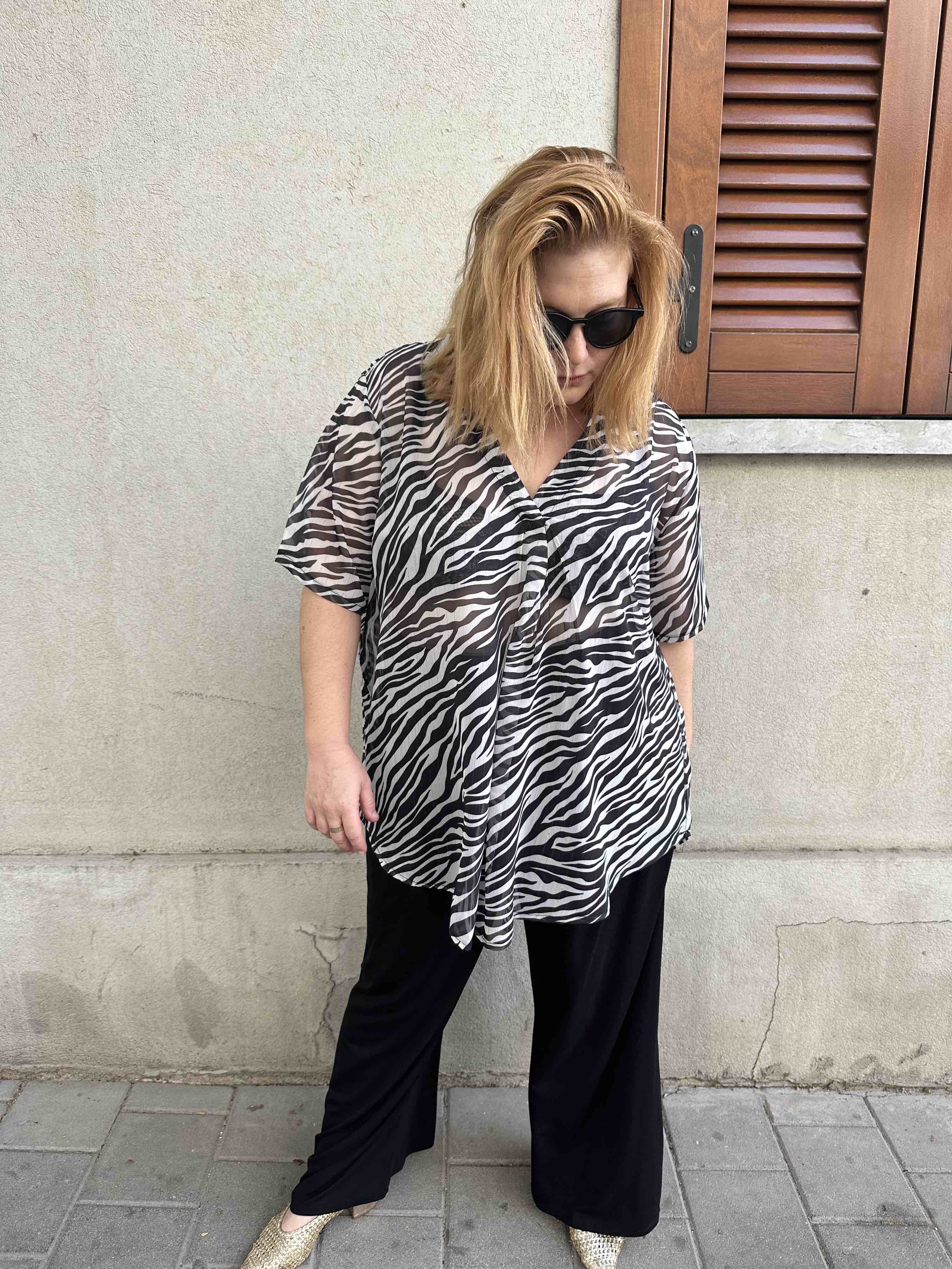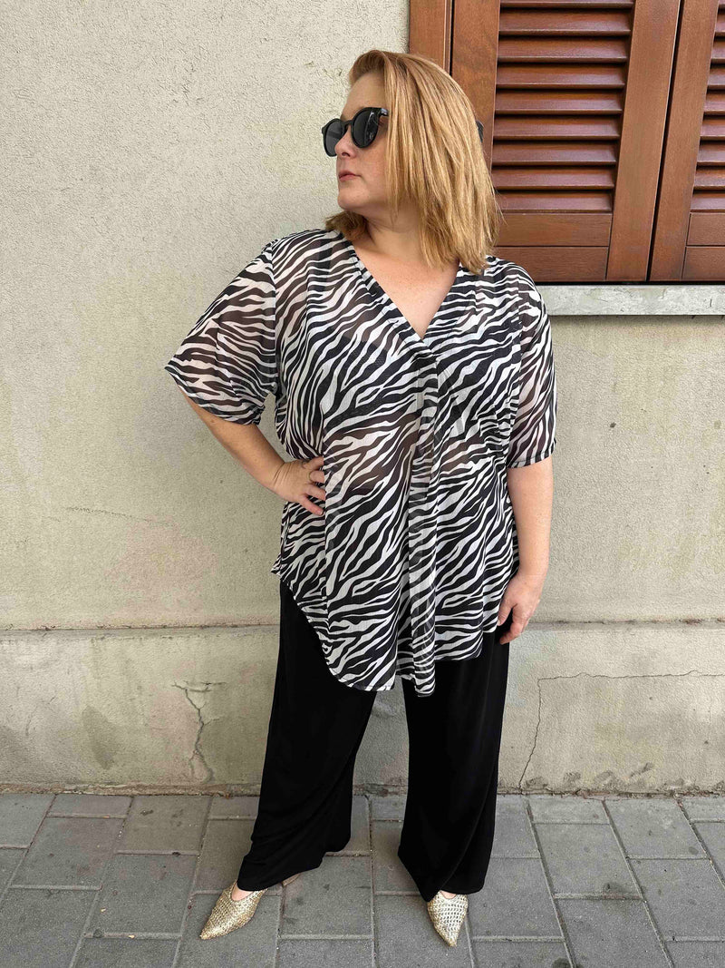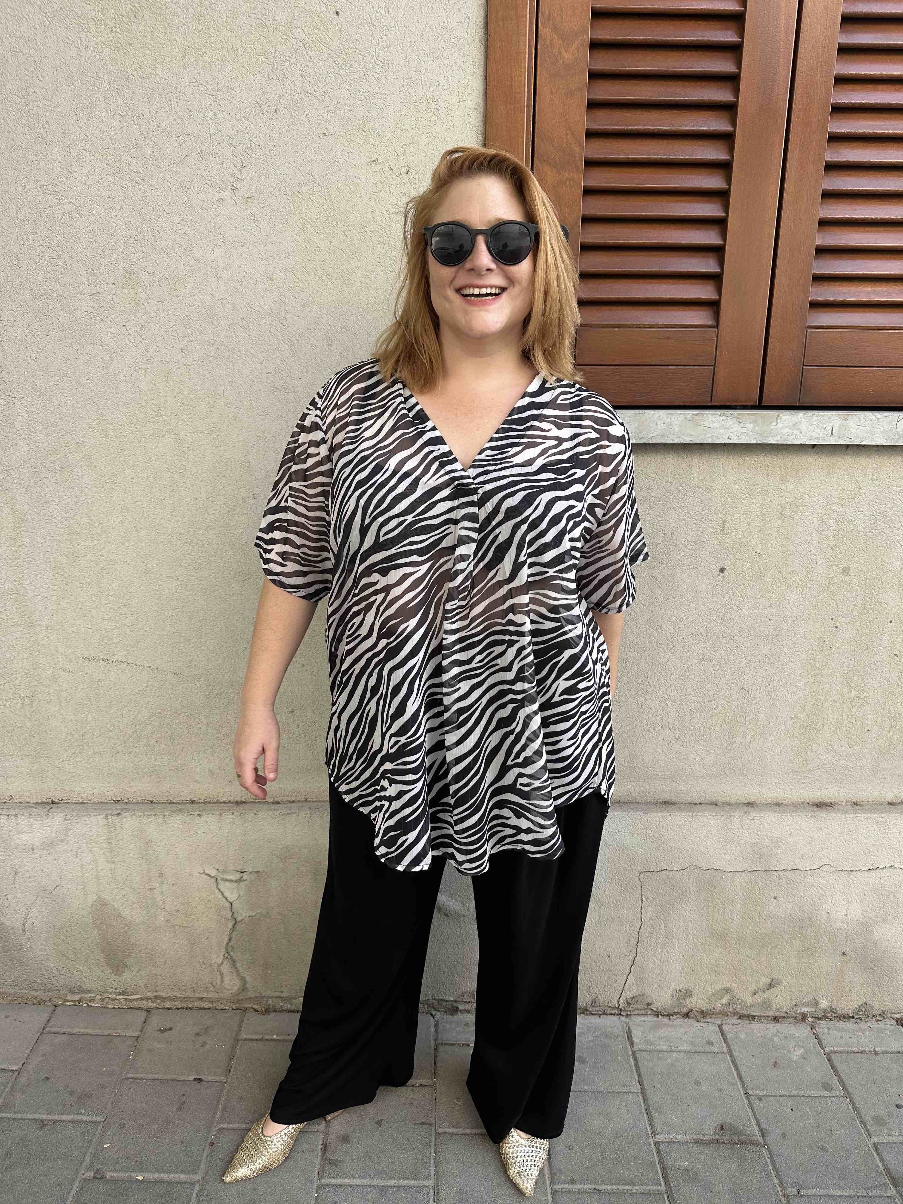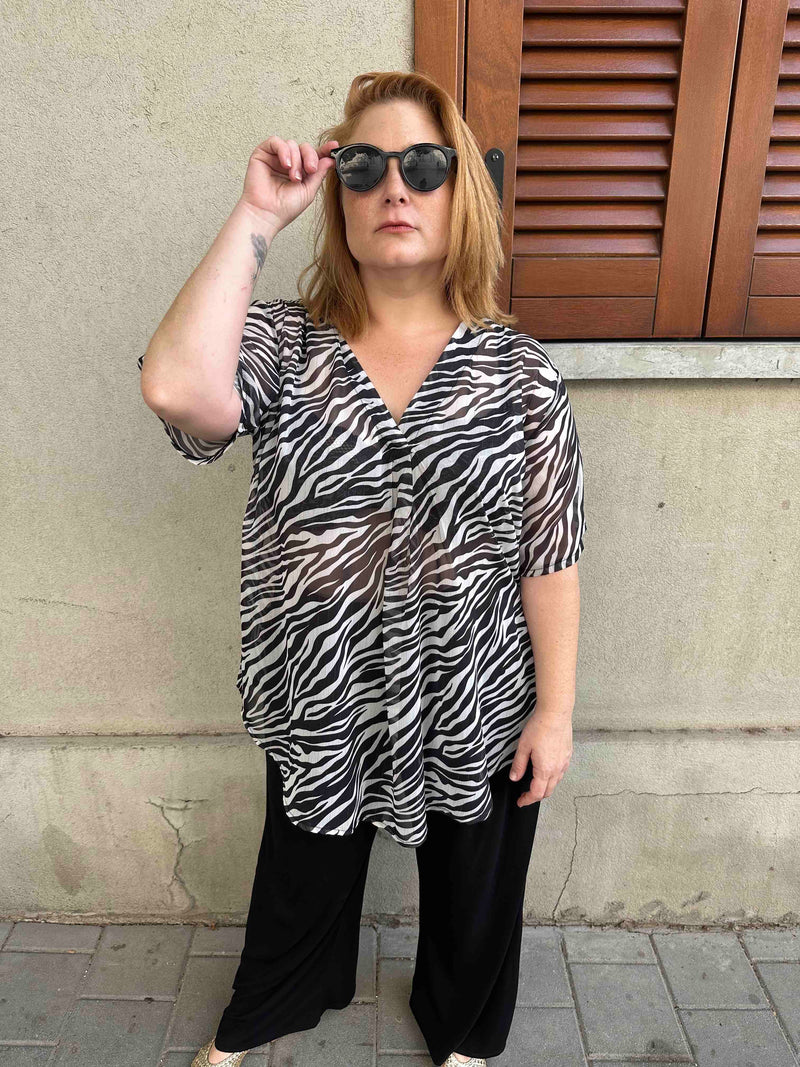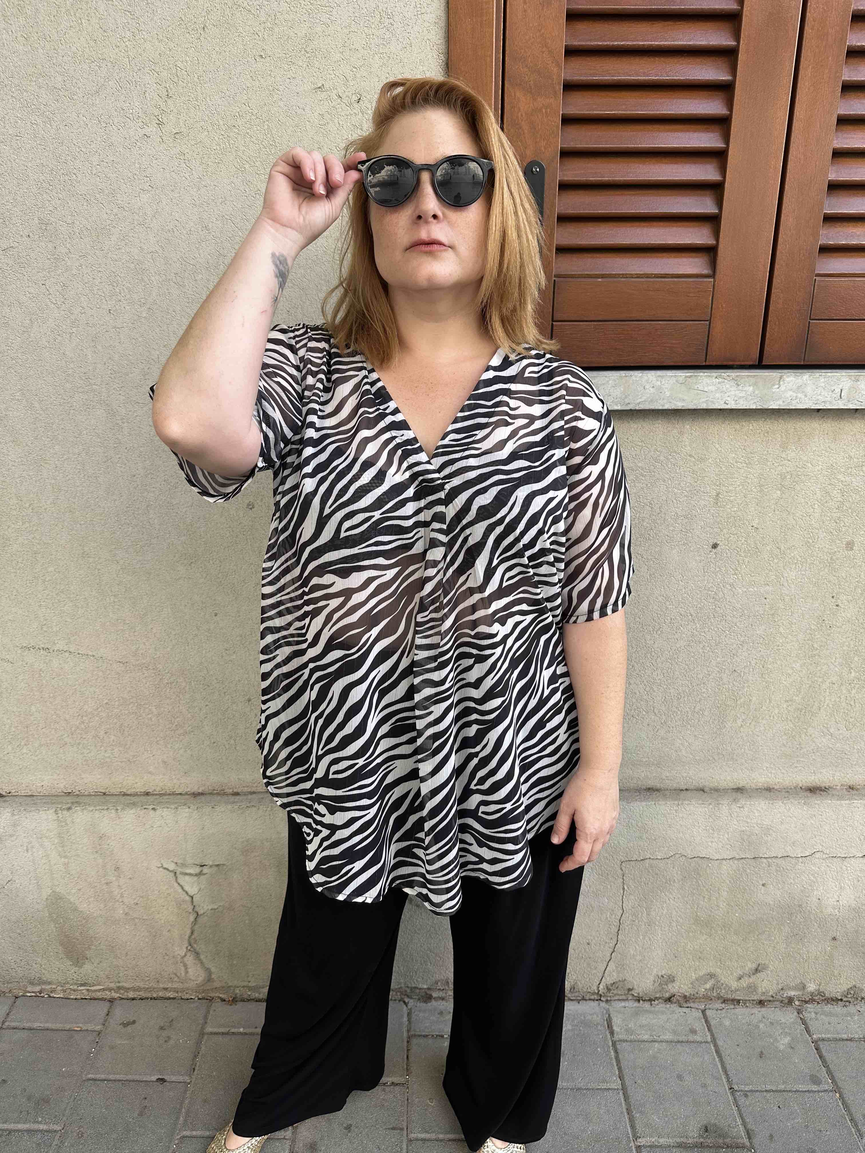 חולצת אוברסייז מהממת, עם צווארון וי עמוק.