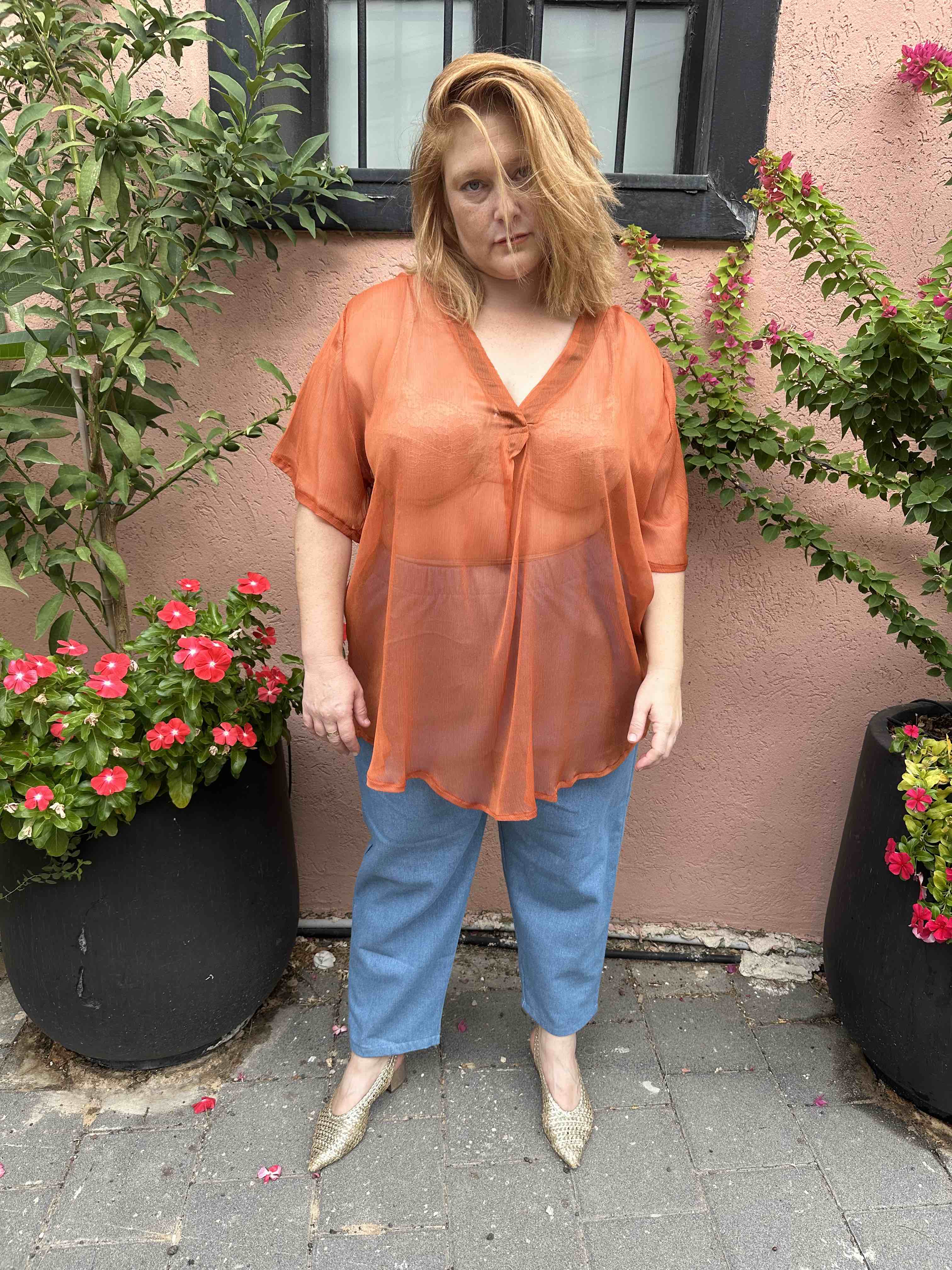 חולצת אוברסייז מהממת, עם צווארון וי עמוק.