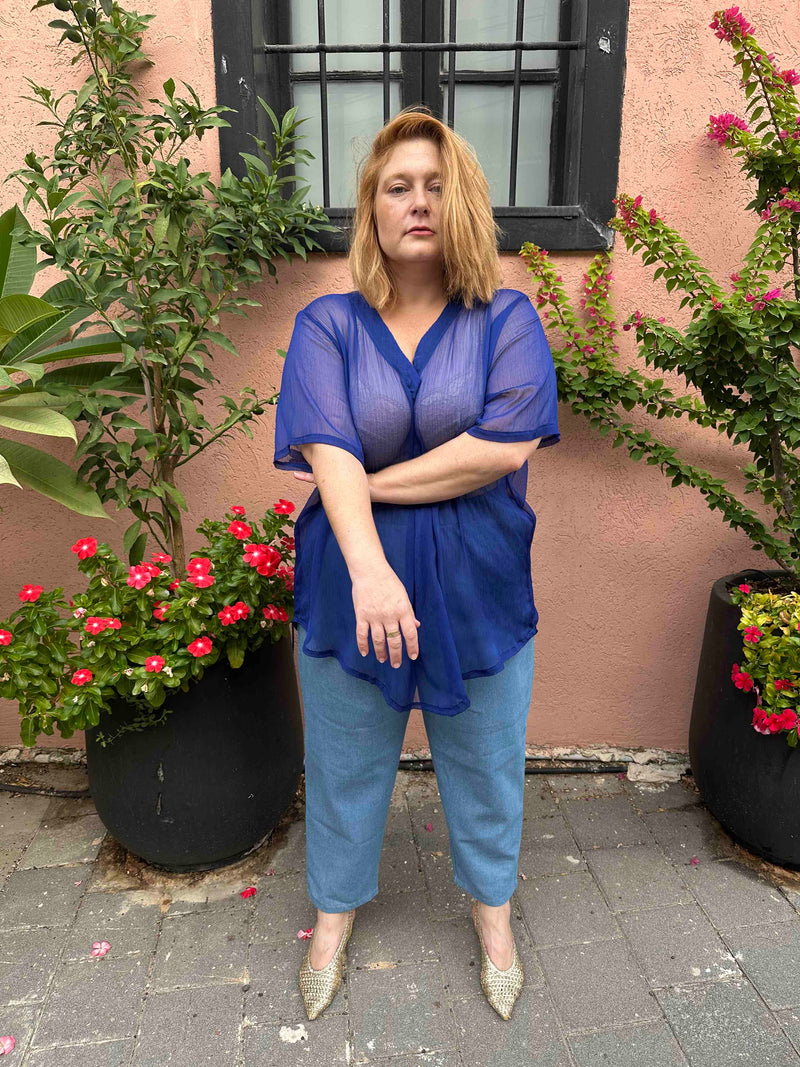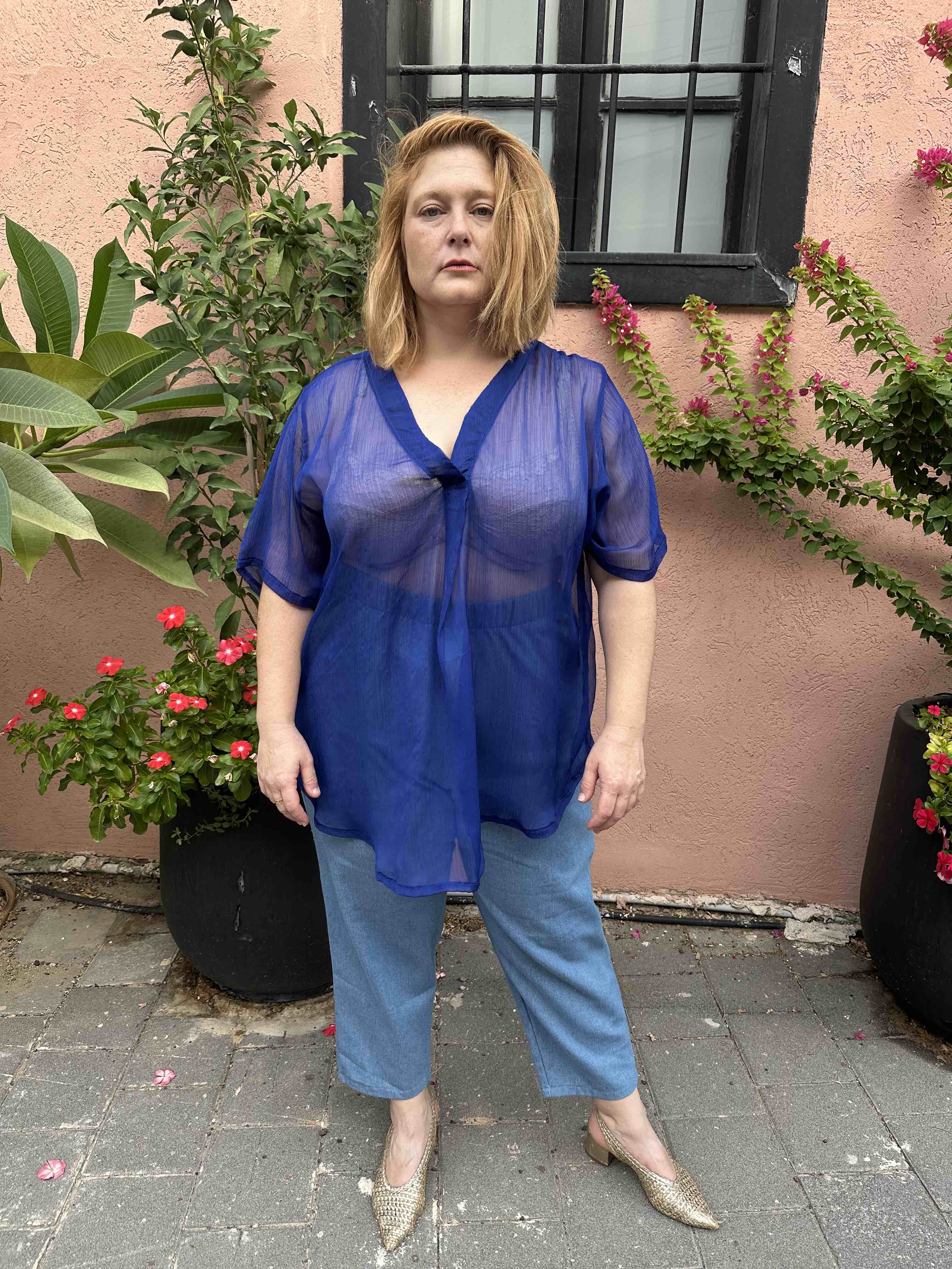 חולצת אוברסייז מהממת, עם צווארון וי עמוק.