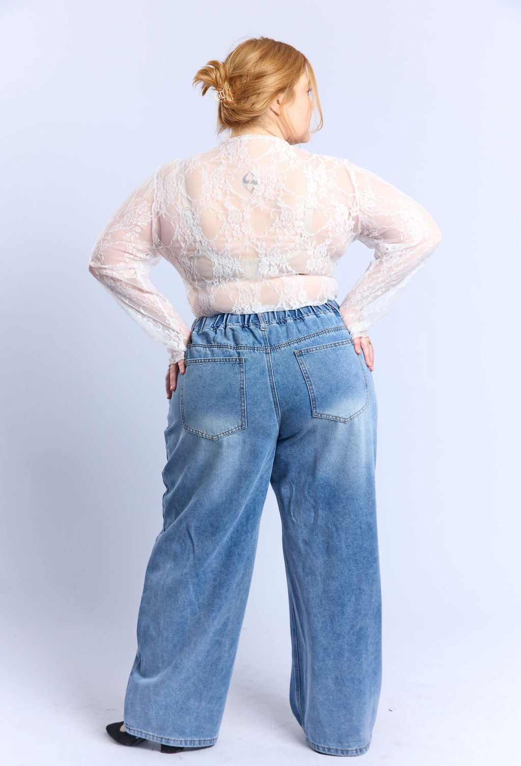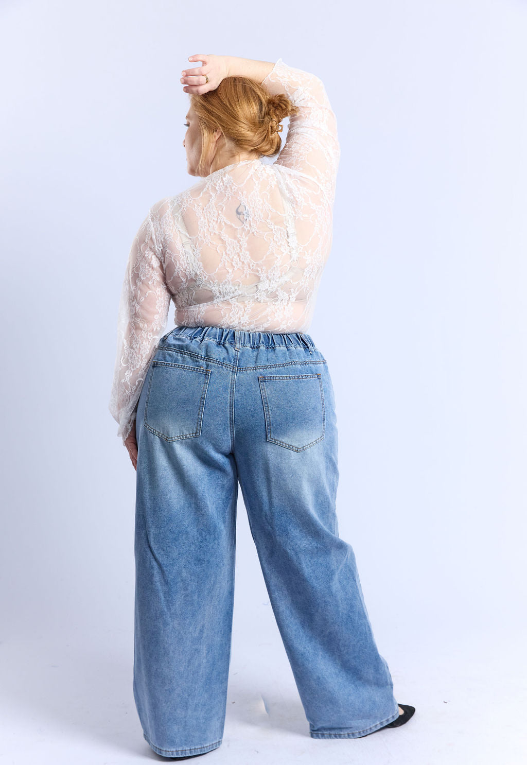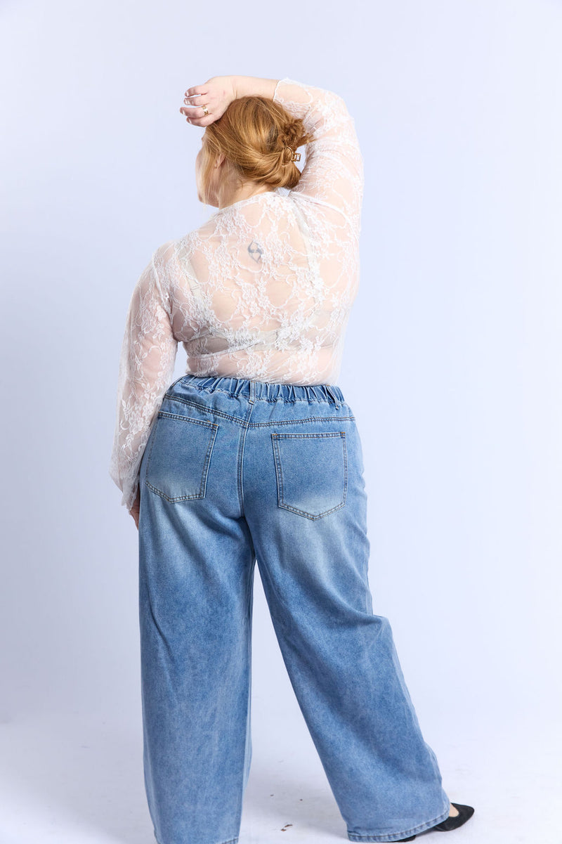 חולצת תחרה דקיקה ושקופה שתתאים למידות גדולות בגזרה צמודה עם צווארון עגול, שעולה מעט במעלה הצוואר, איך אינו גולף. החולצה מצריכה ללבוש תחתיה חזיה אטומה או טופ או גופיה לבחירתך.