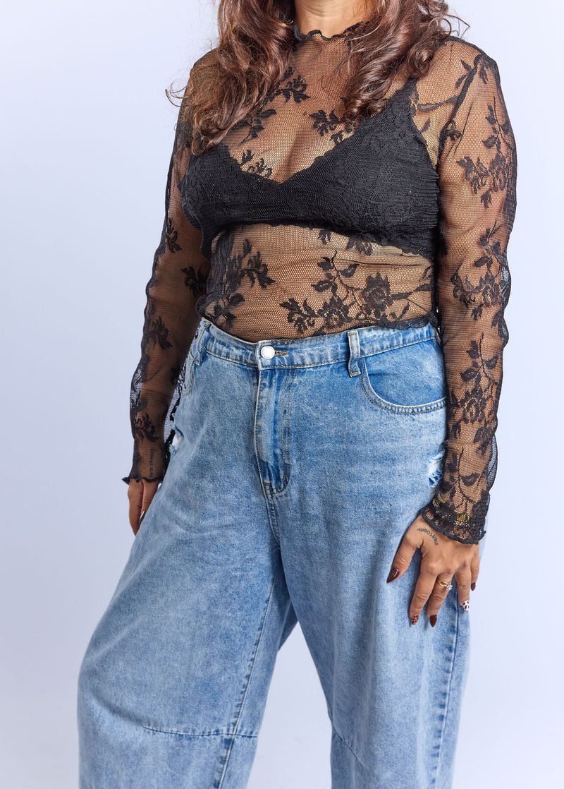 חולצת לולו - תחרה שחור