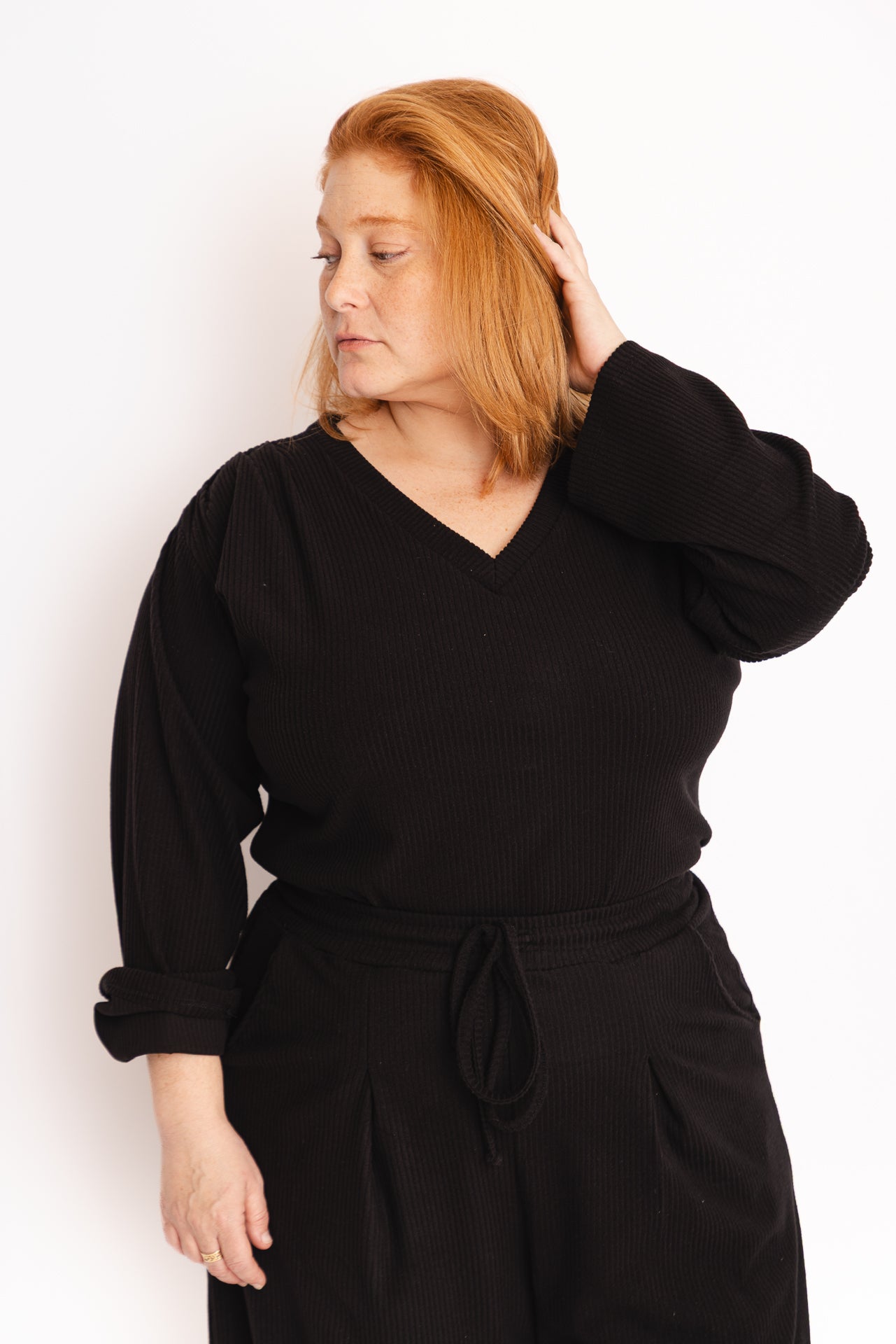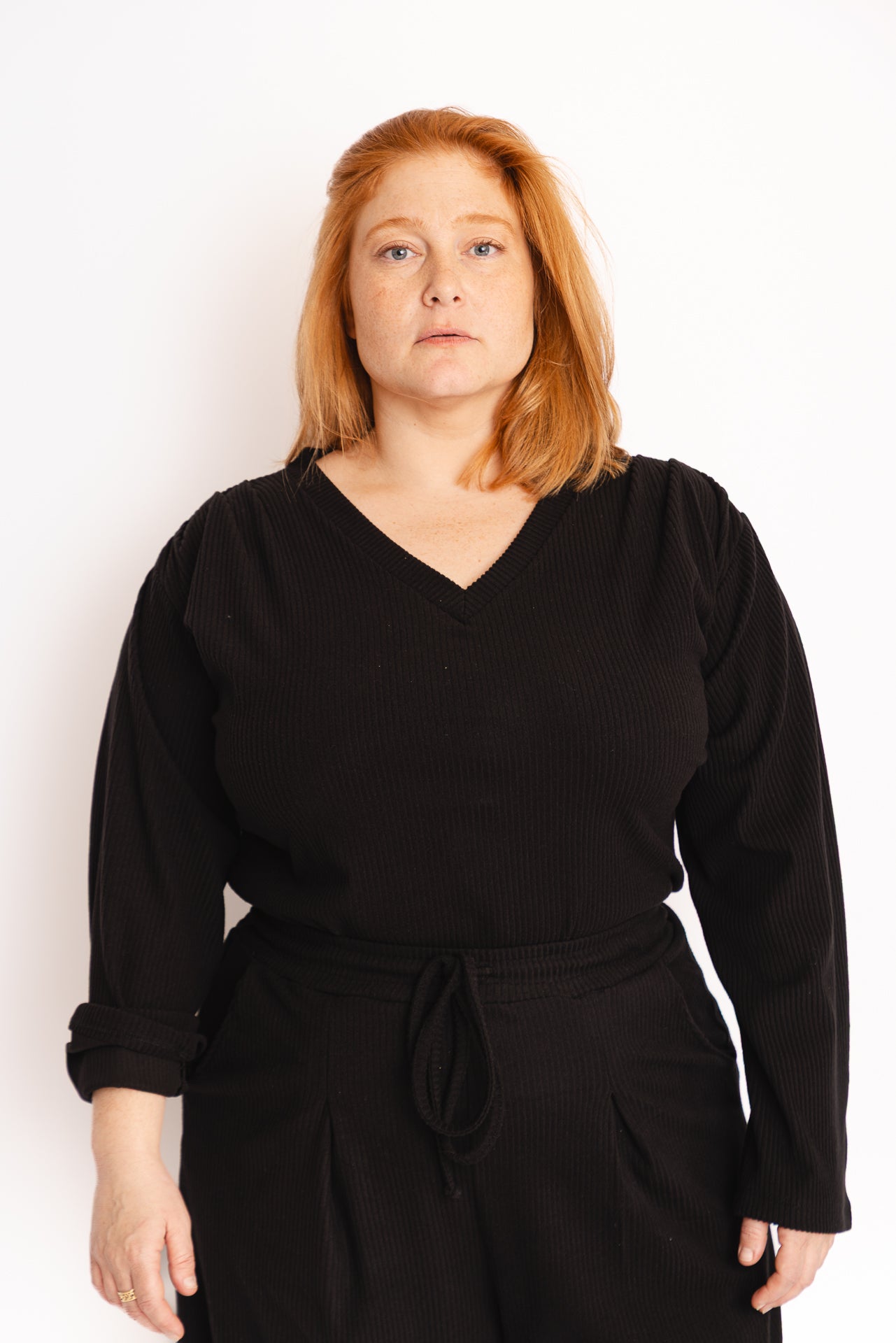 מאיה (ג׳ינג׳ית) הדוגמנית שלנו בגובה 160 ס״מ ולובשת מידה 44