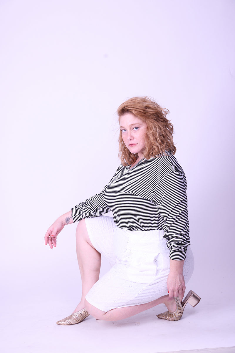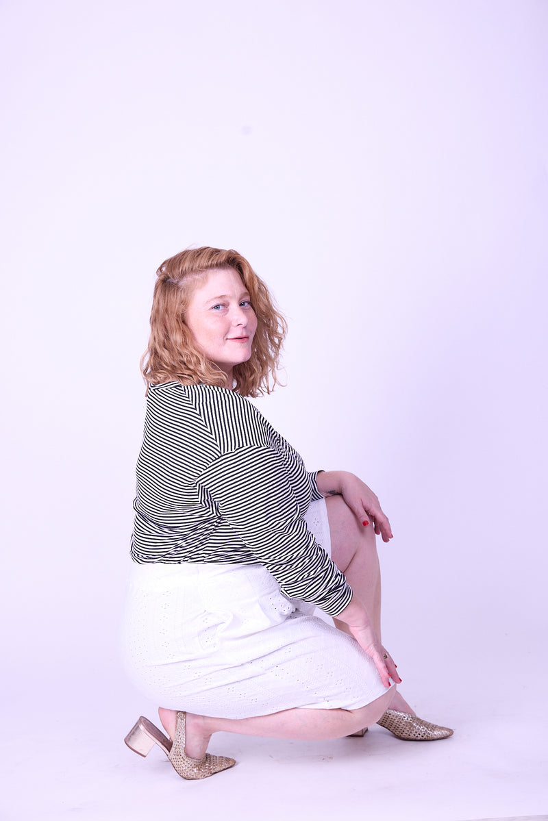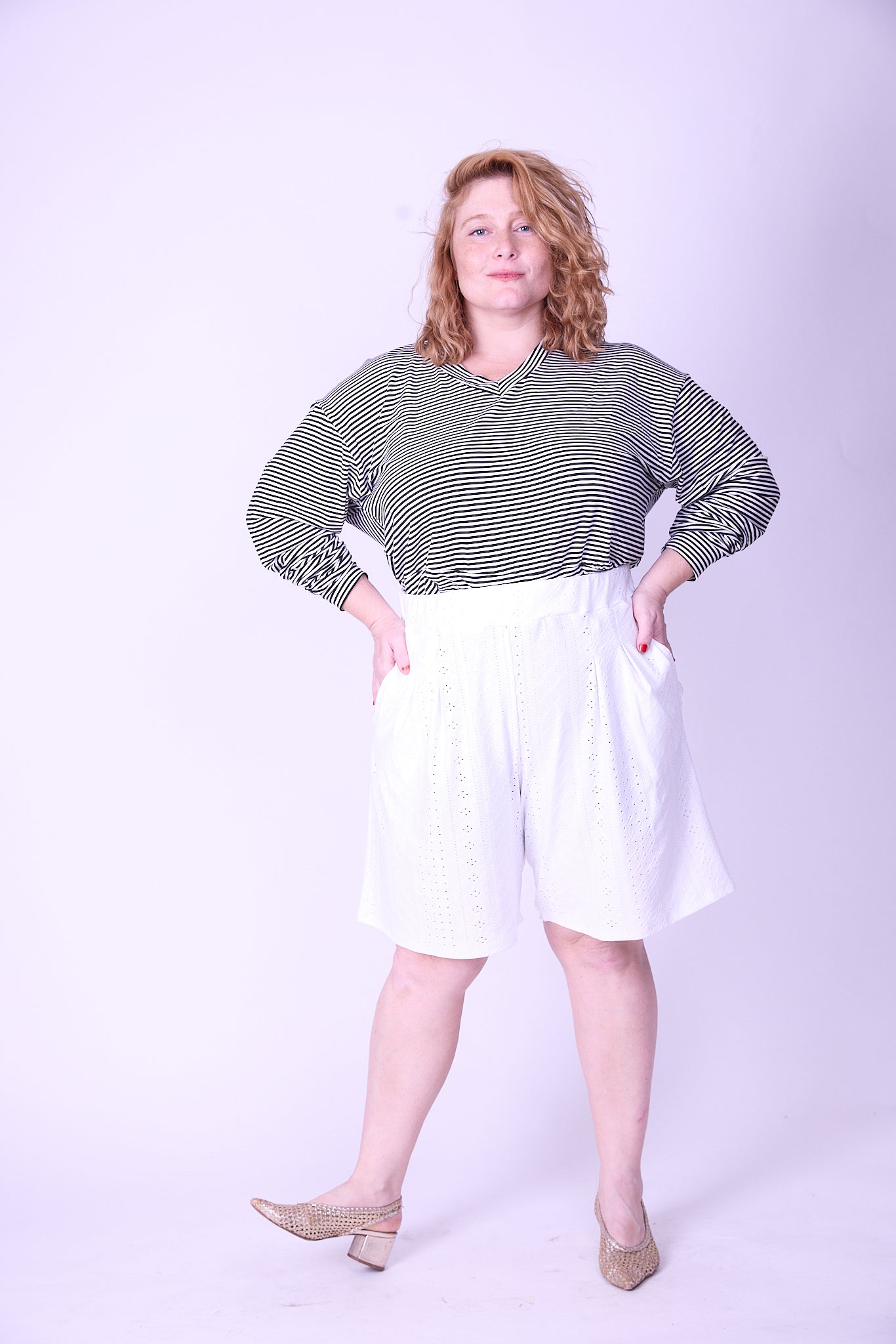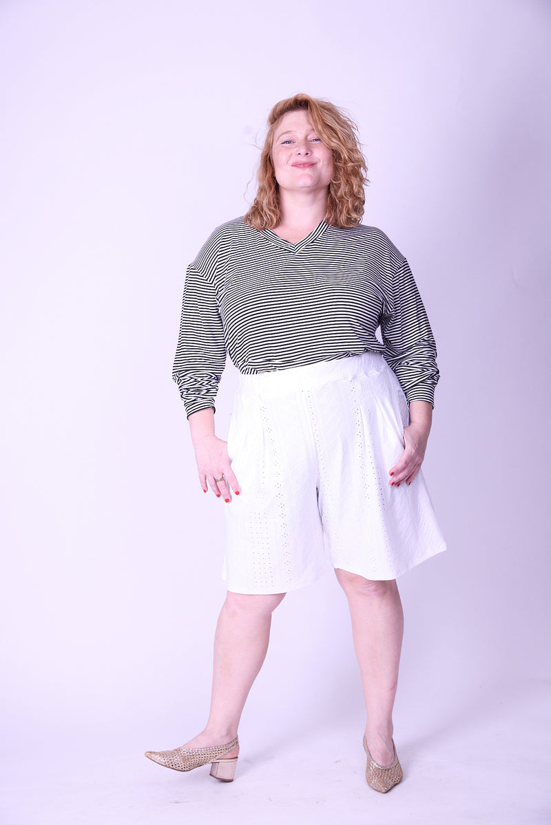 אנחנו הכנו לך מכנסיים מושלמים בגזרת מכנס חצאית גבוה ומתרחב, כמובן עם כיסים (למעשה מדובר בגזרת מכנסי הגוסטינג שלנו בקצר).
