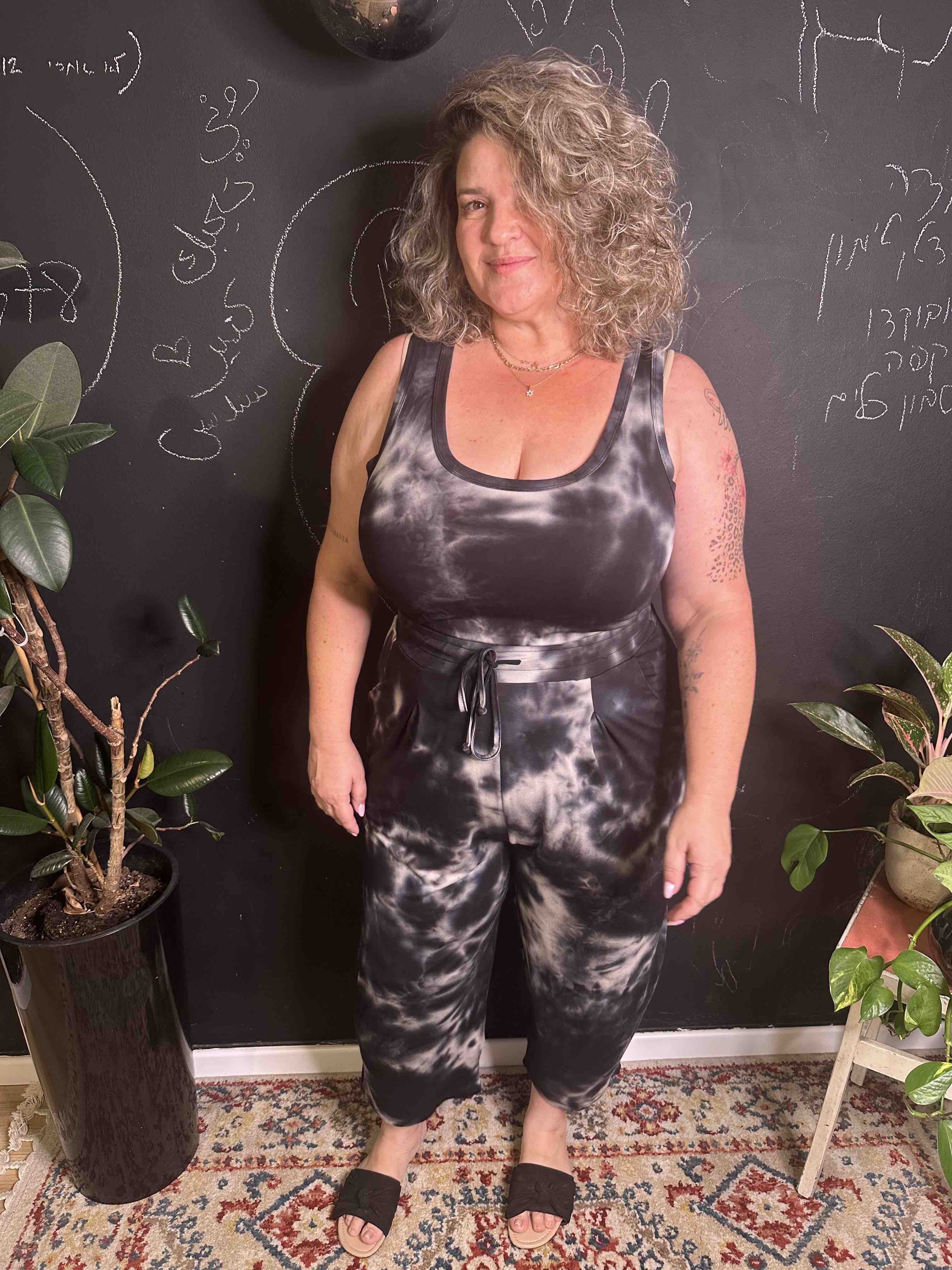 הדוגמנית בתמונה לובשת מידה 48 וגובהה 1.67 מ׳.