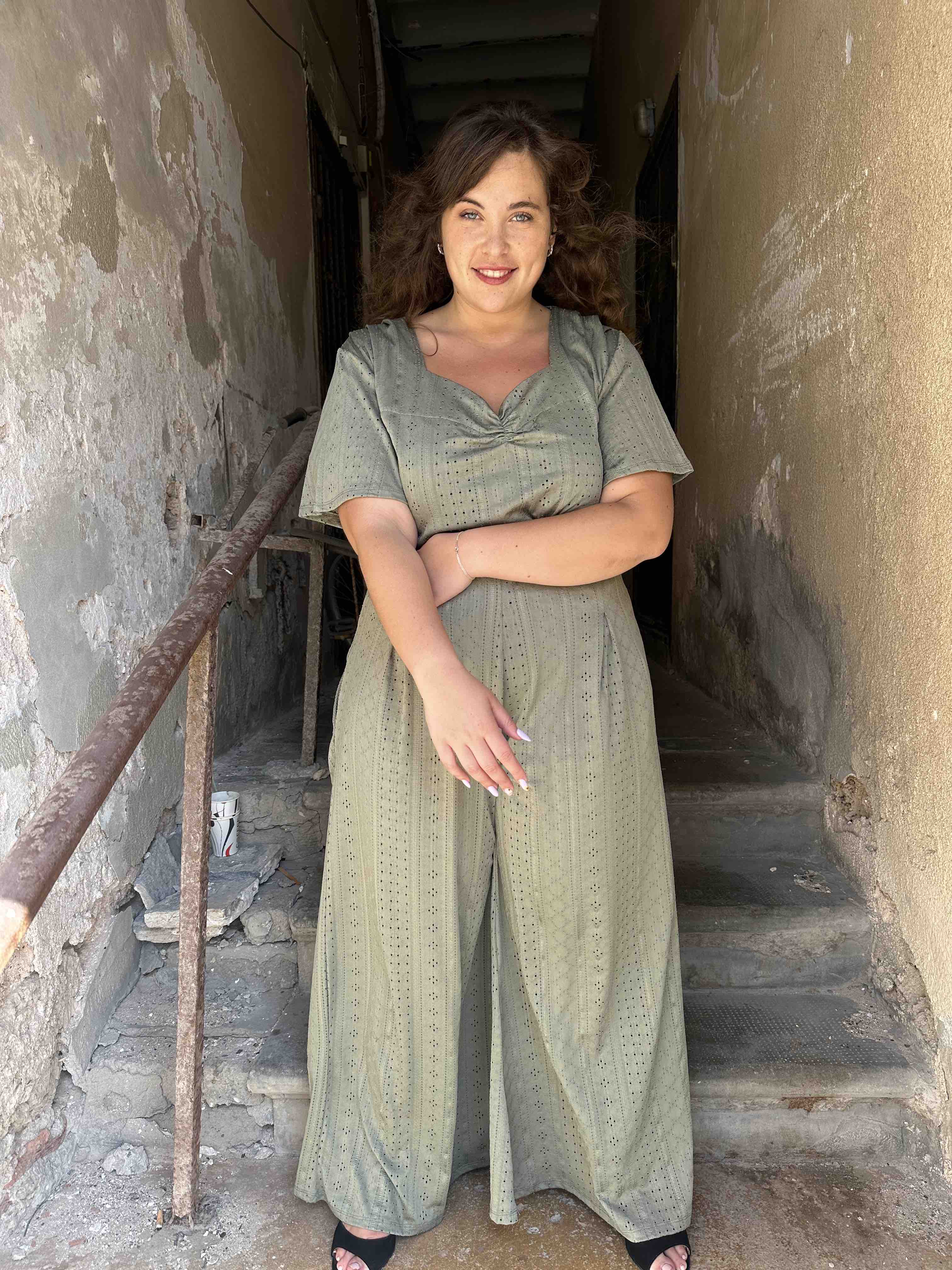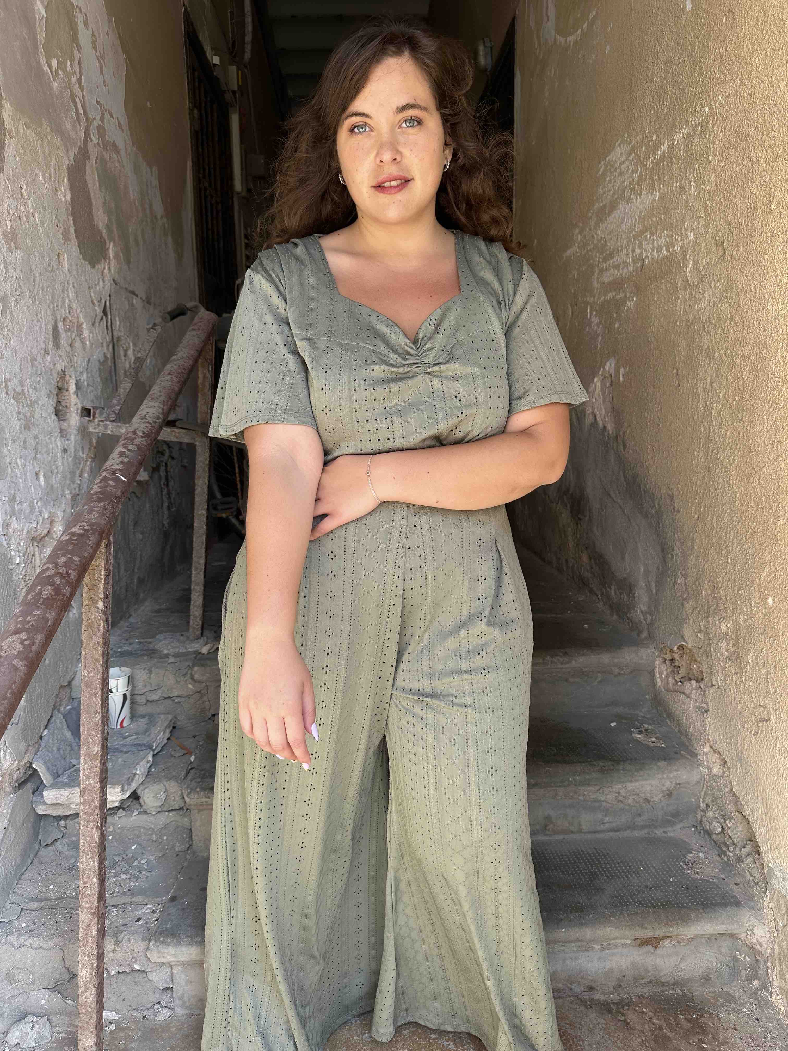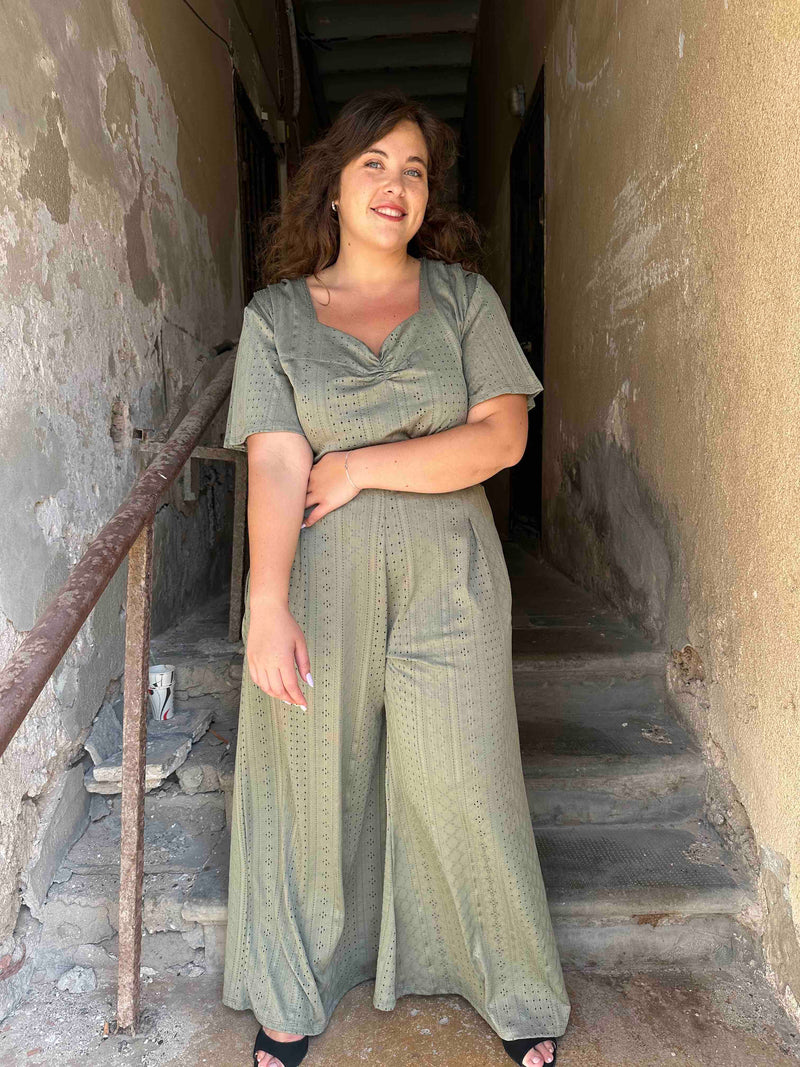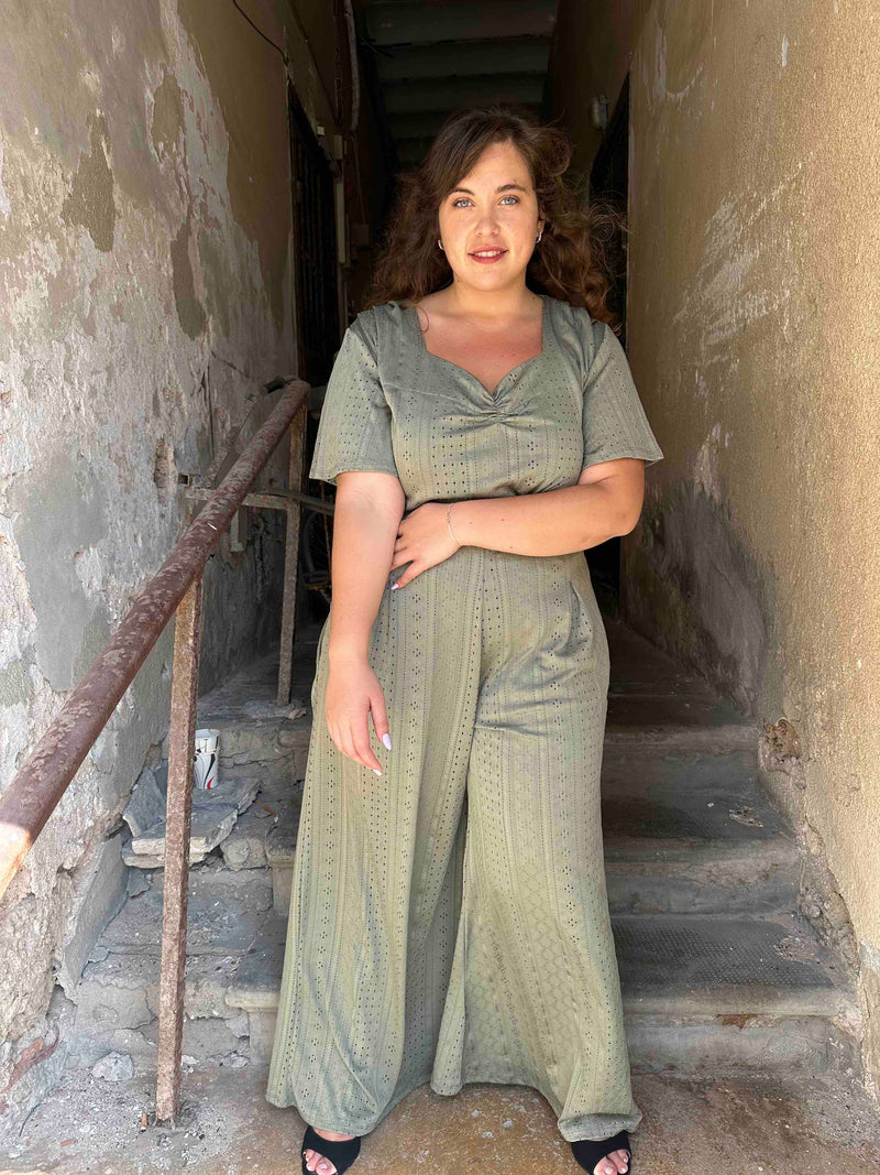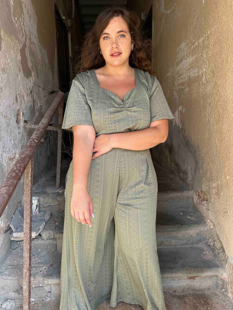 מכנסי מולי - ירוק זית לייקרה תחרה