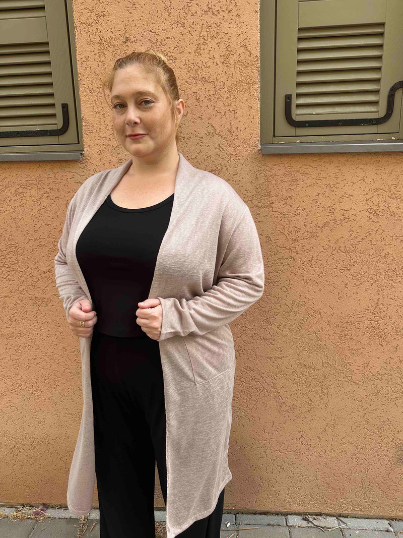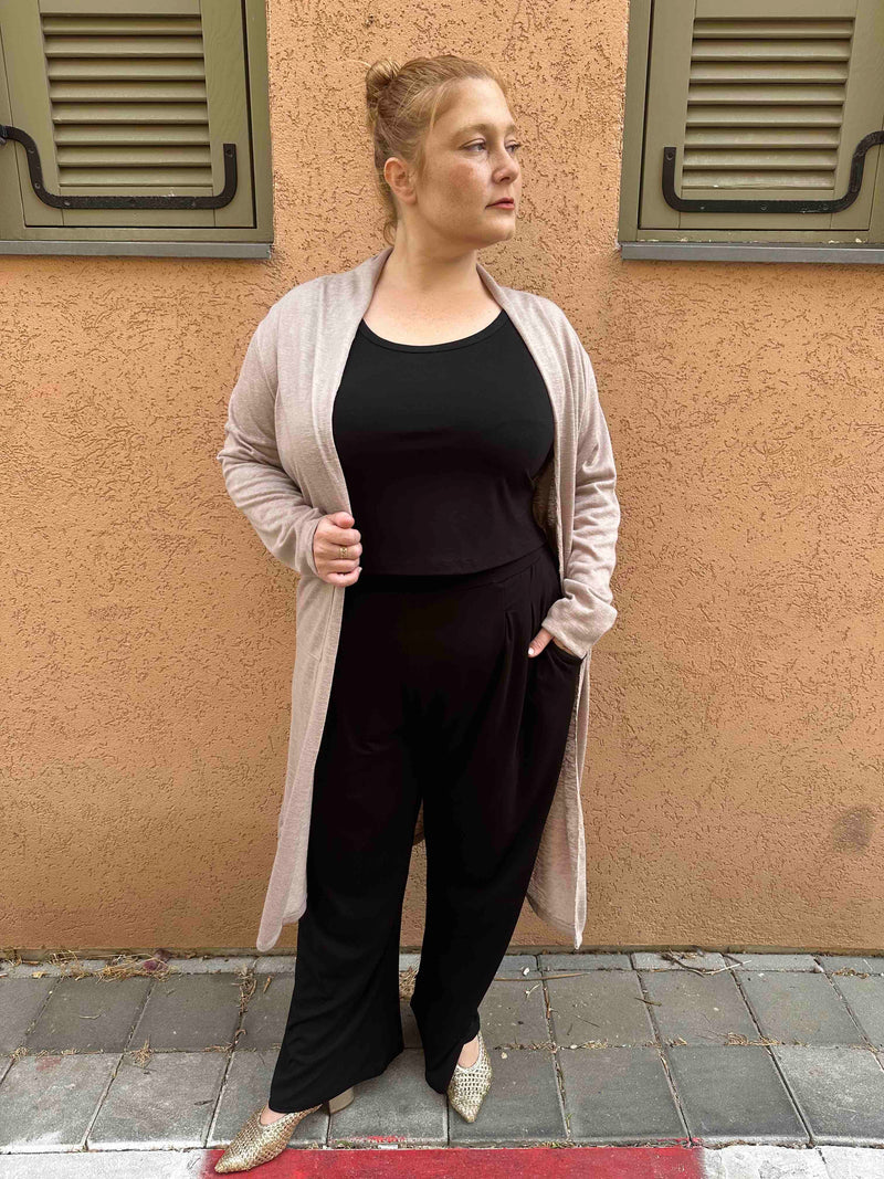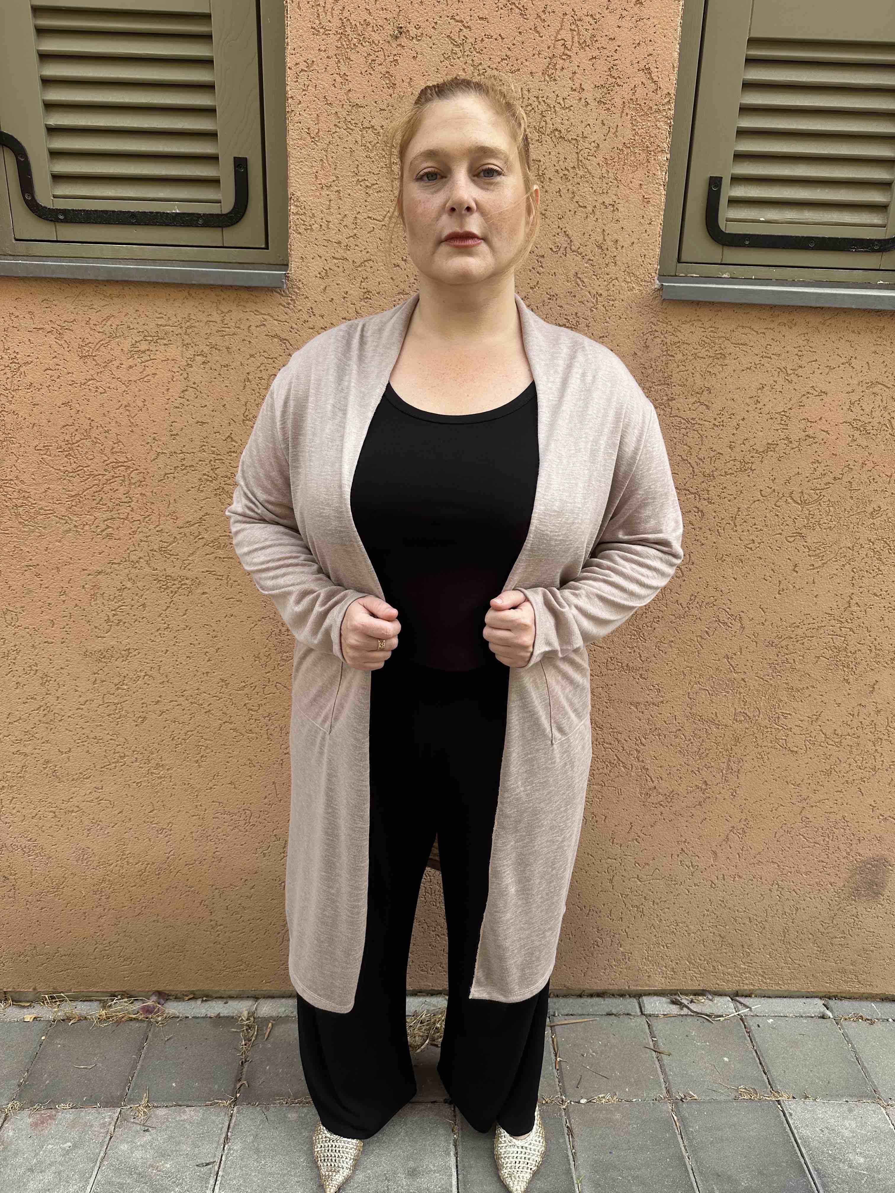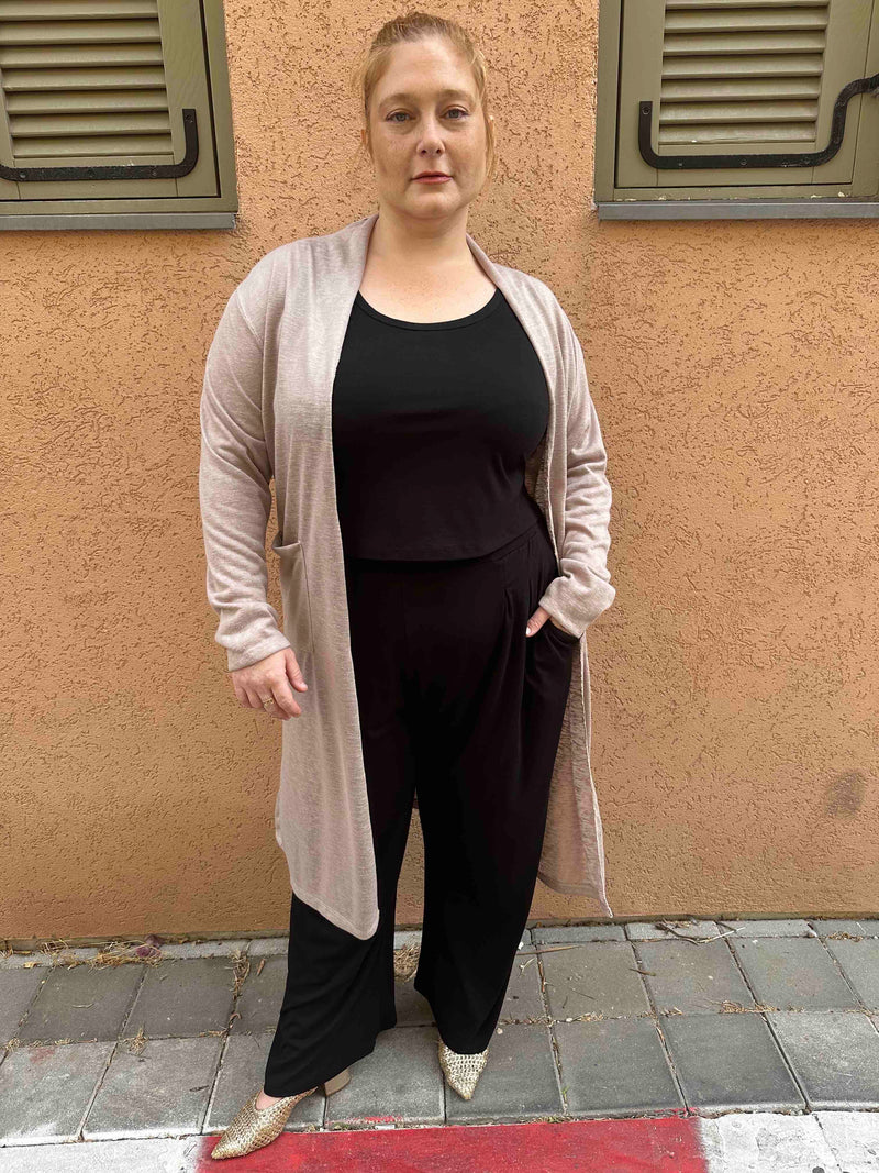 עליונית למידות גדולות שהיא למעשה עליונית פתוחה בגזרת אובר סייז זרוקה עם כיסים.