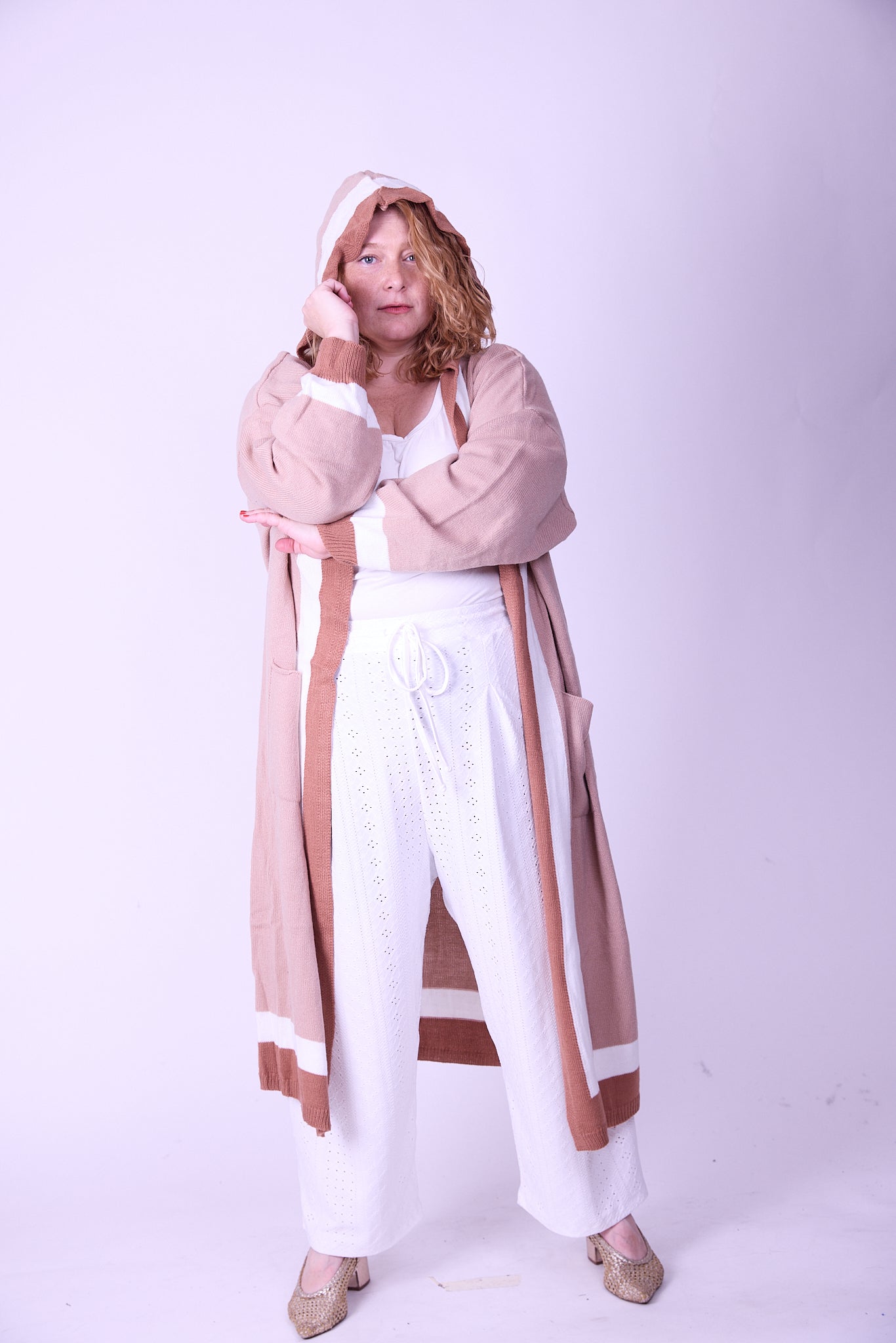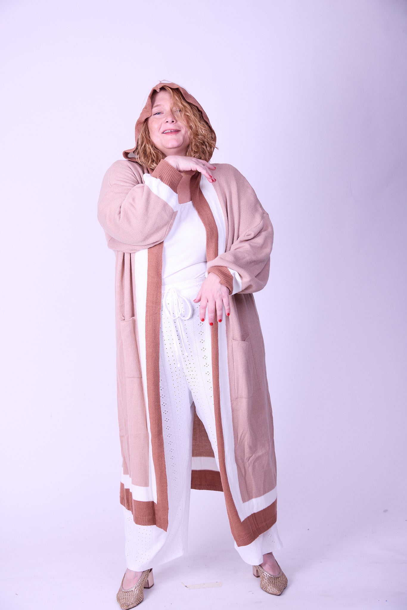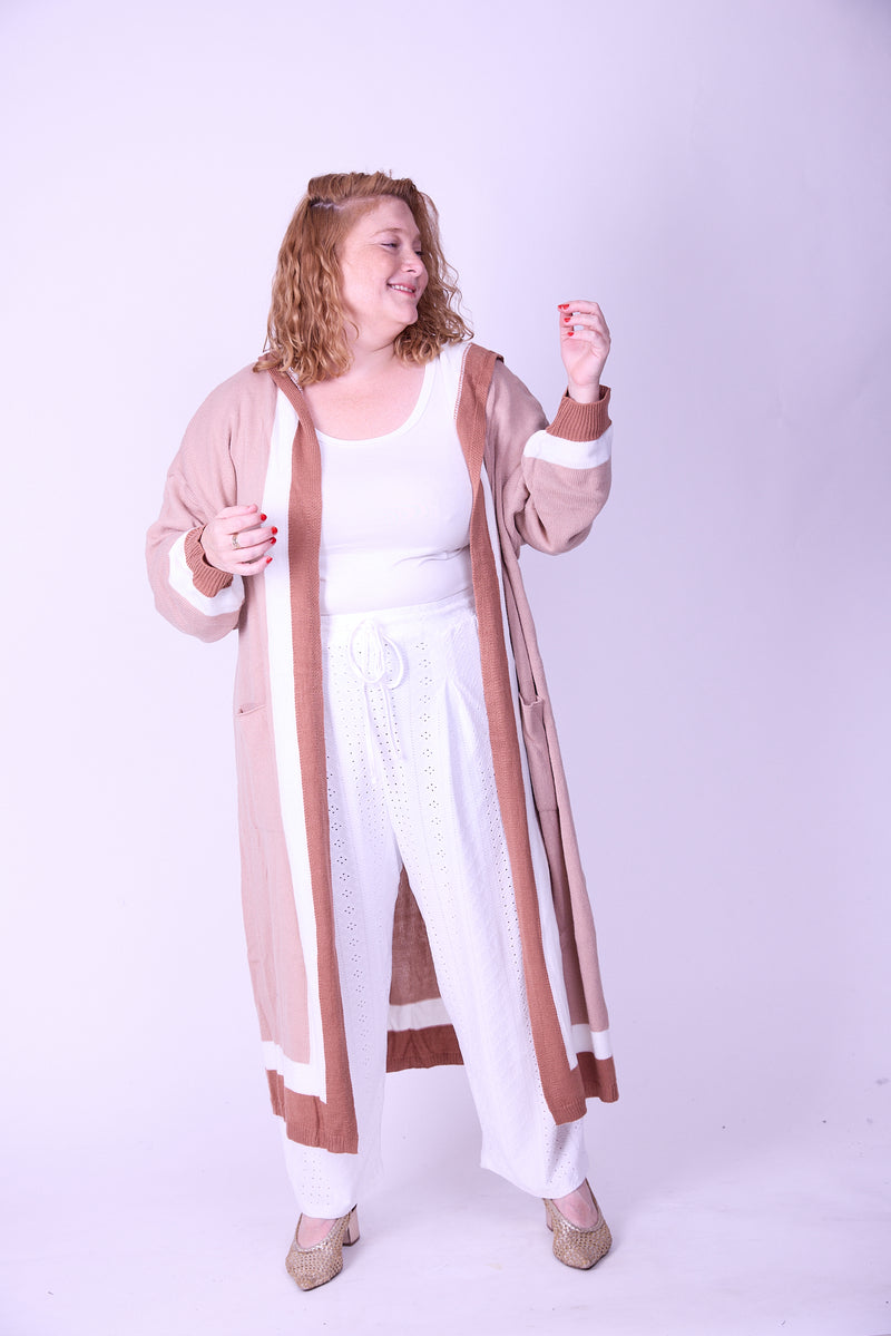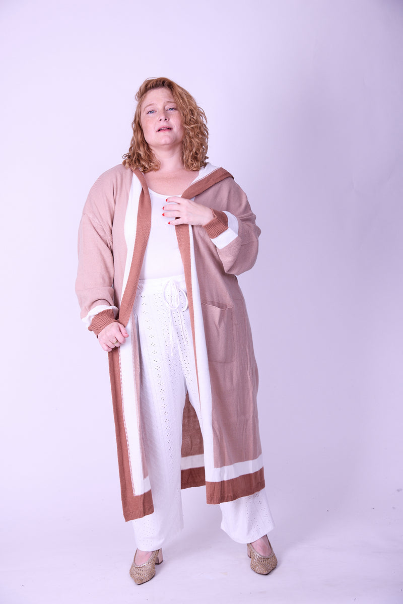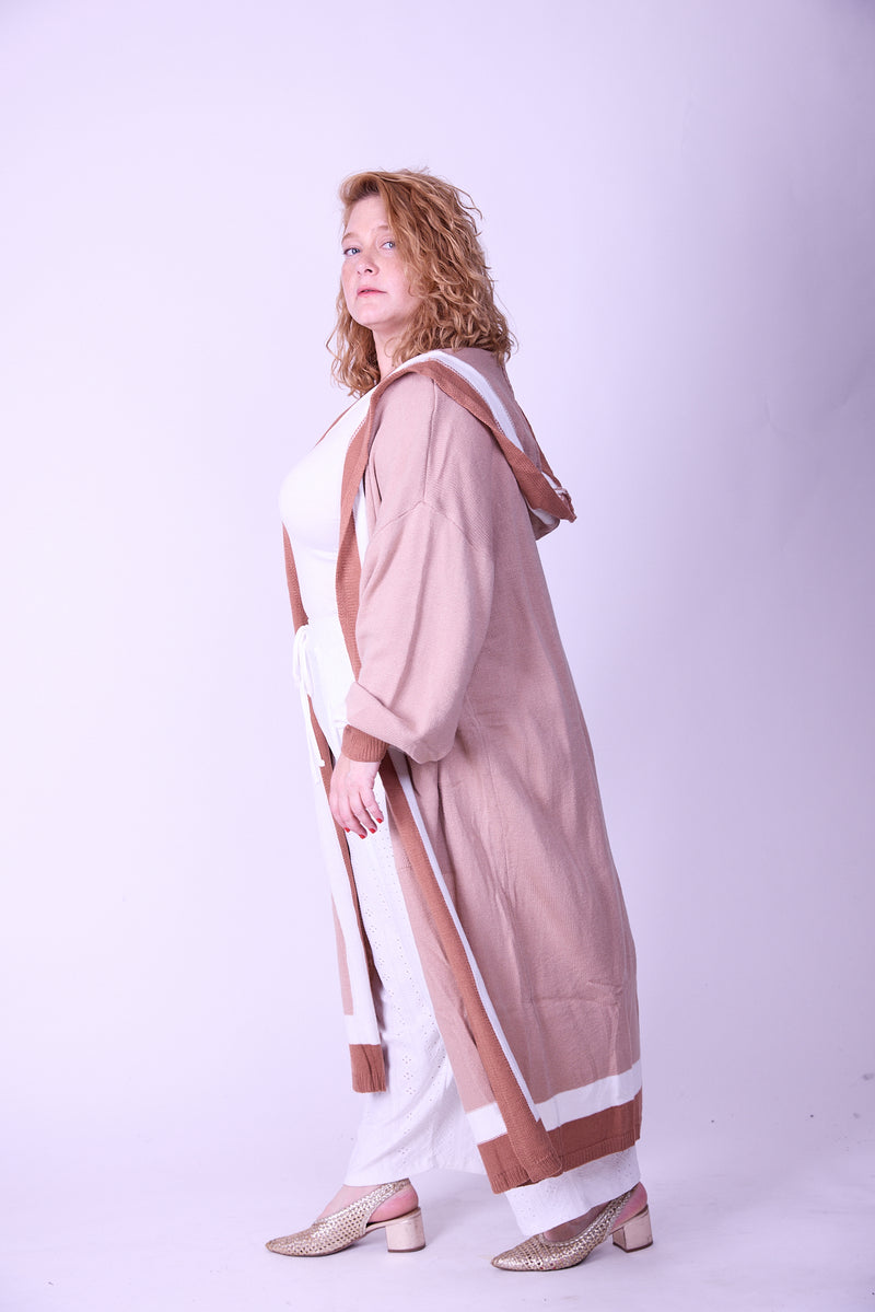 קרדיגן סריג- חום בג׳ עם קפוצ׳ון