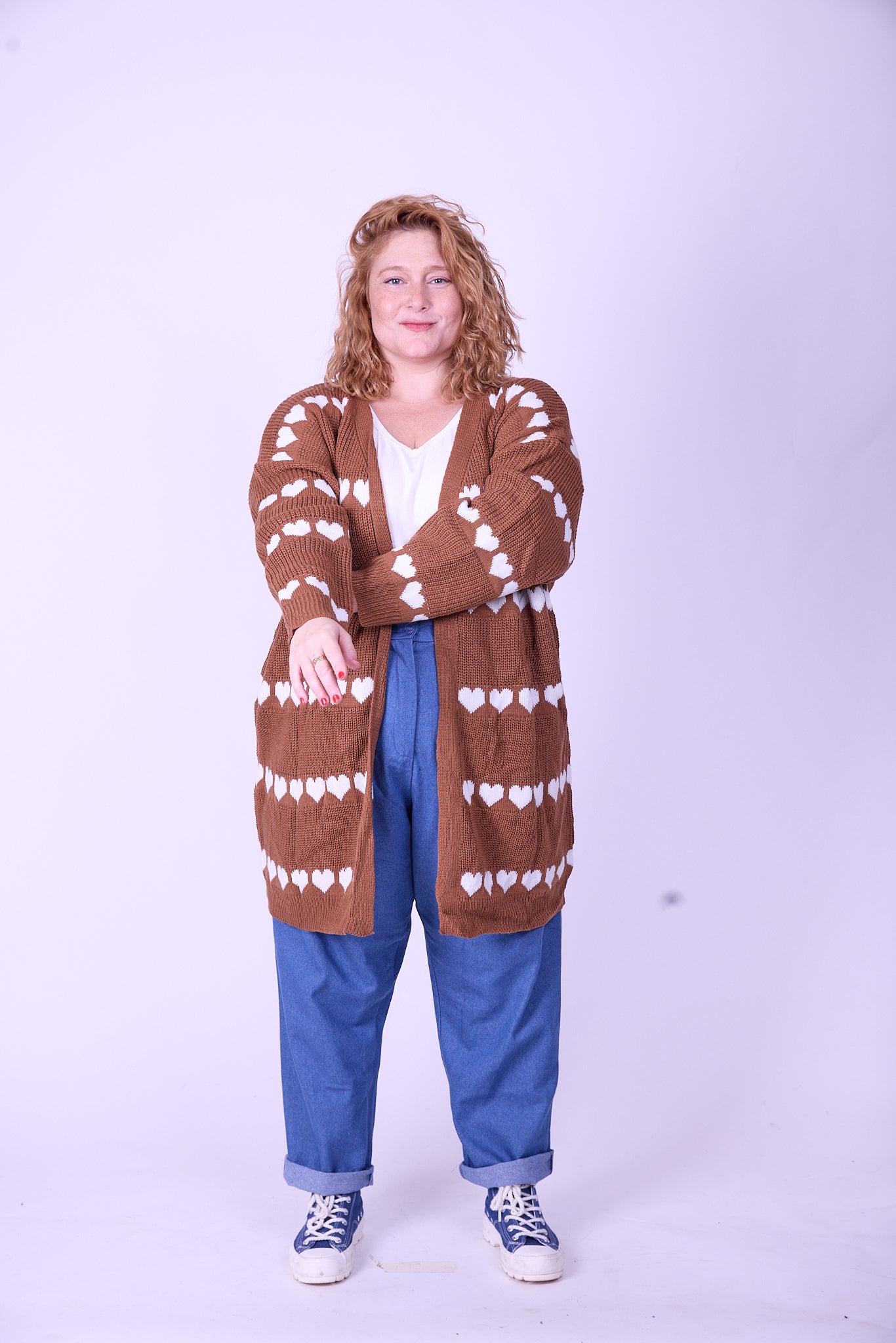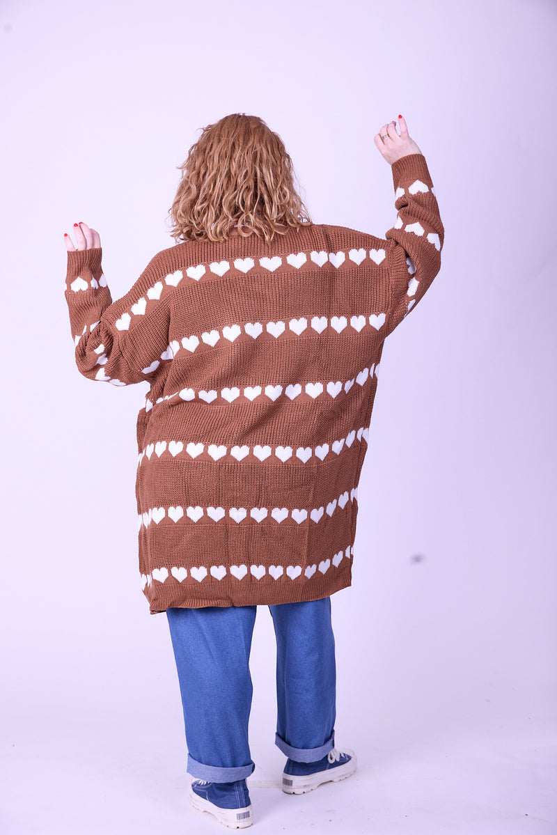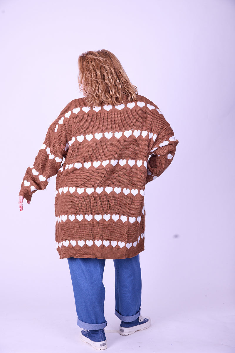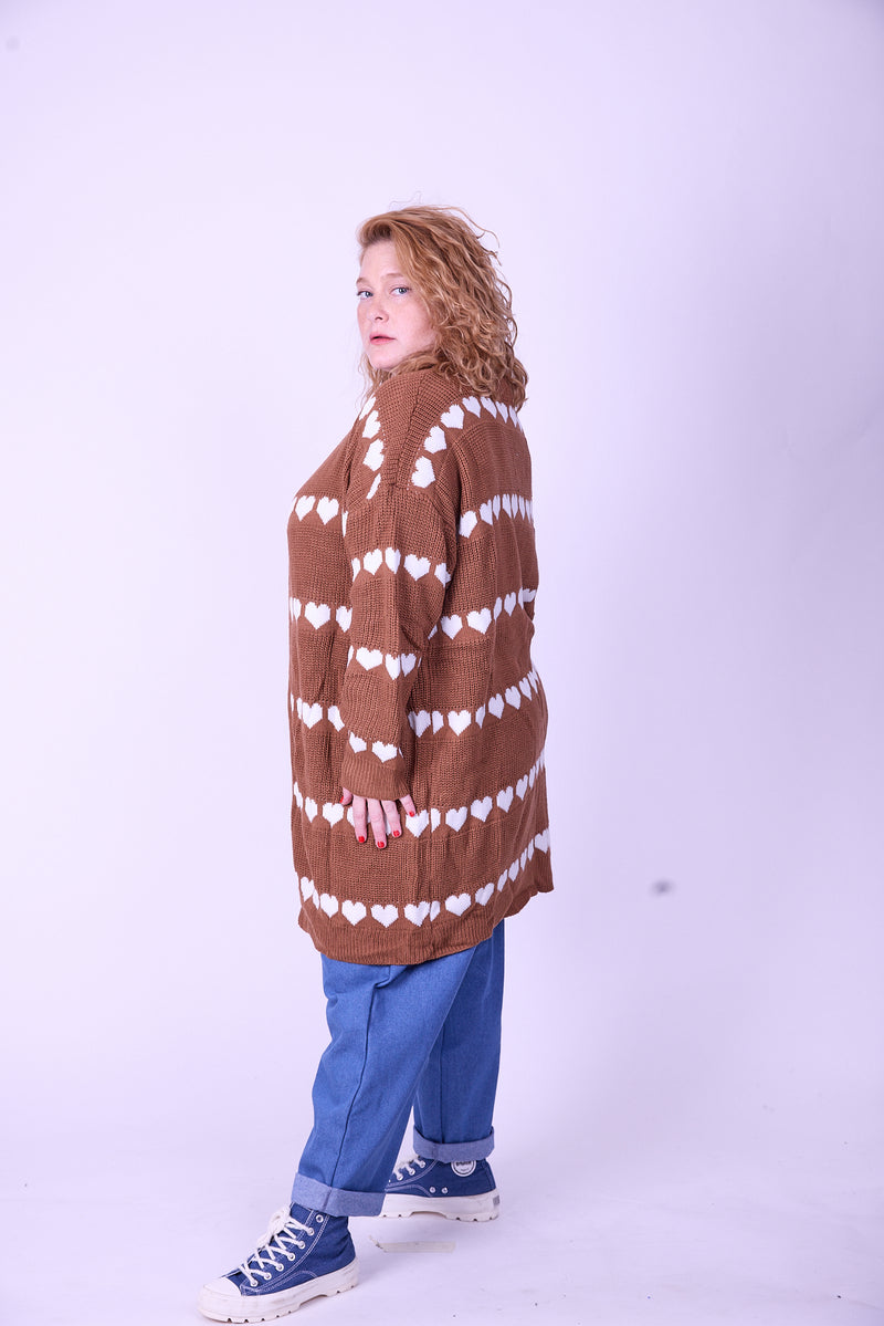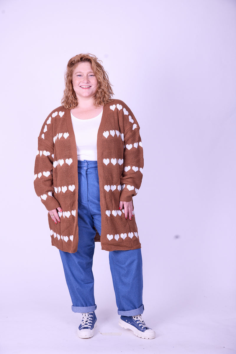 קרדיגן סריג- לבבות חום