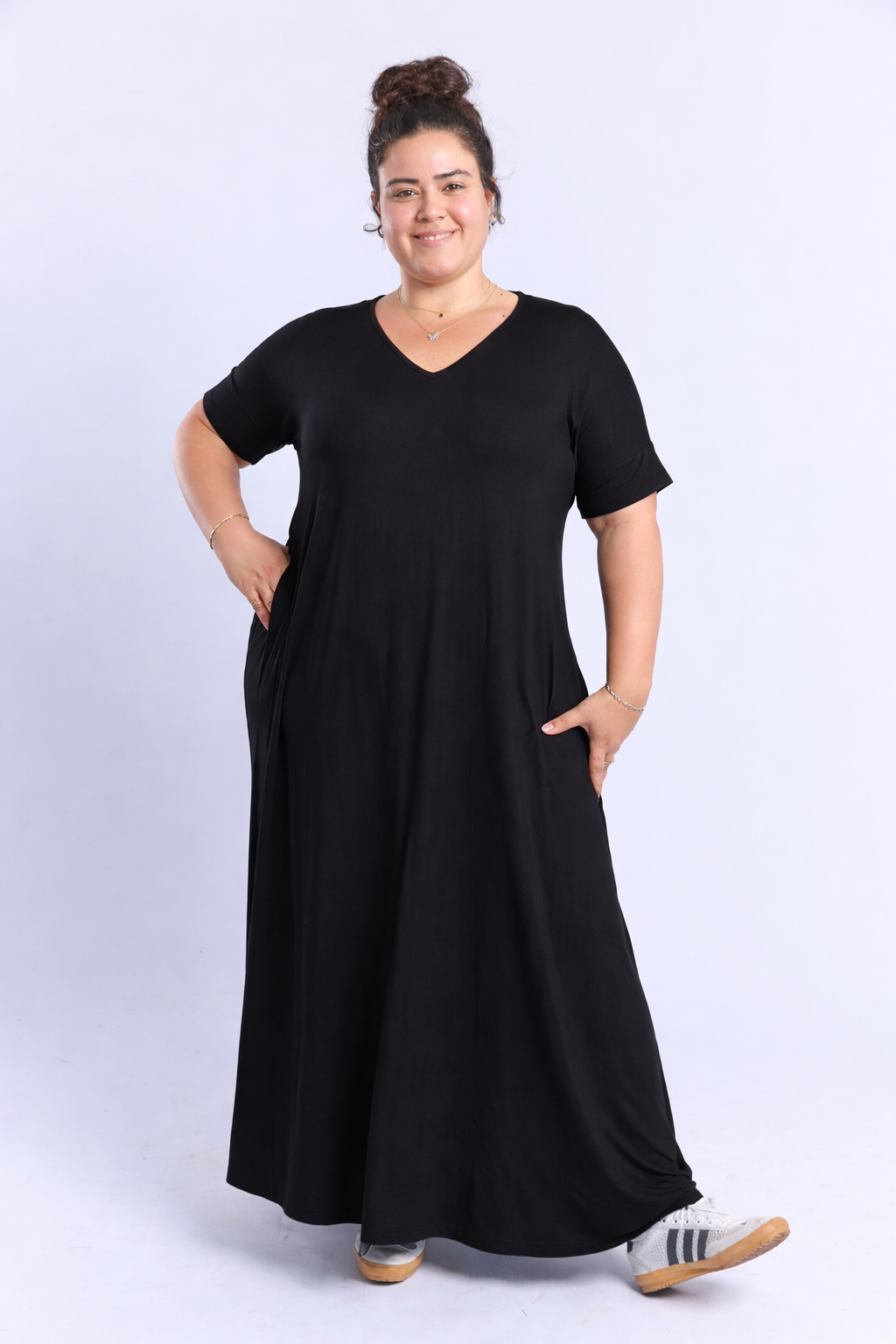 שמלה מושלמת בגיזרת אי- מתרחבת, עם כיסים ומפתח שנותן אוויר לנשימה.